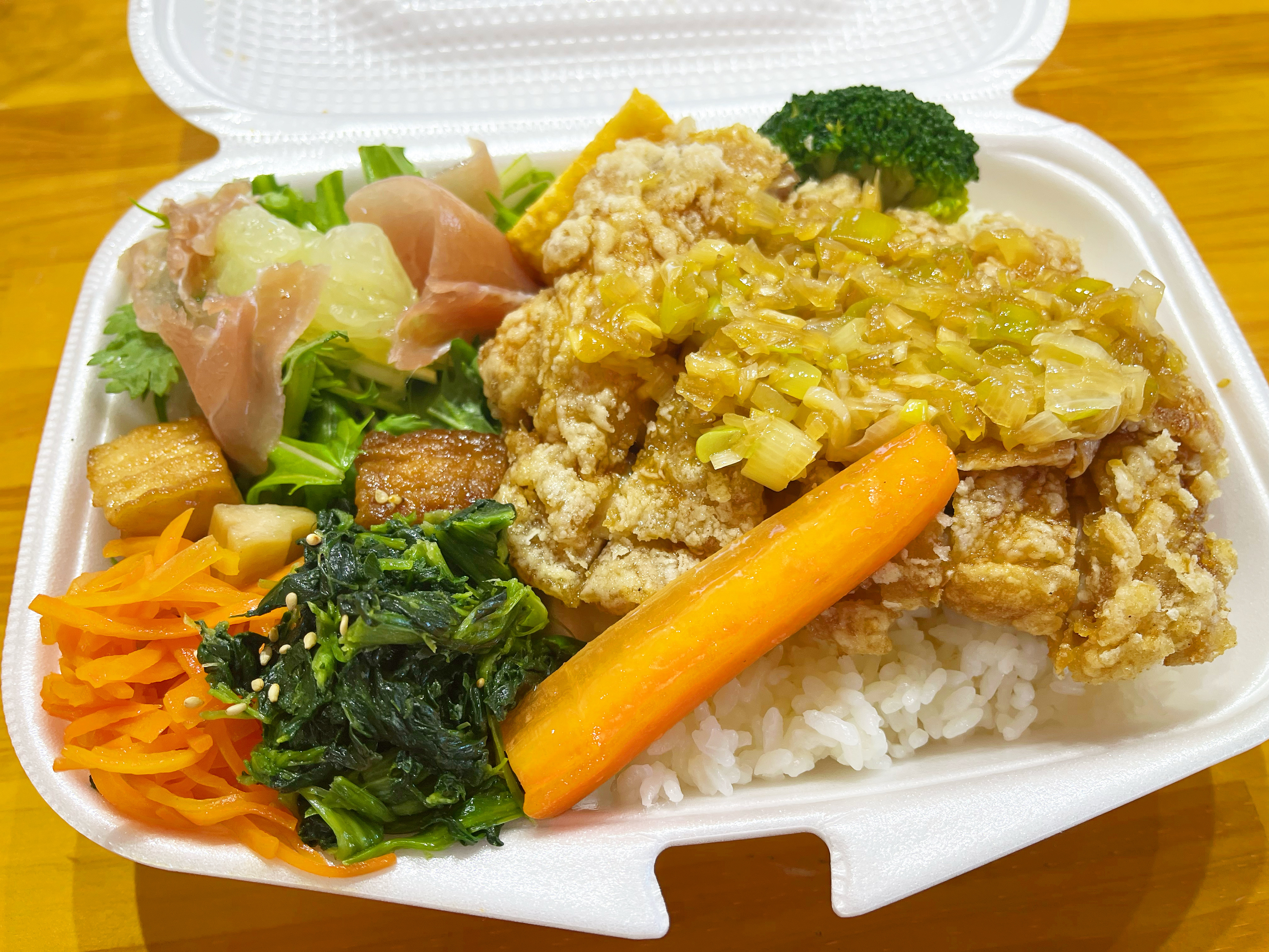 ご飯の上にドドンとのったメインはもちろん!野菜たっぷりのデリが女性にも大人💓