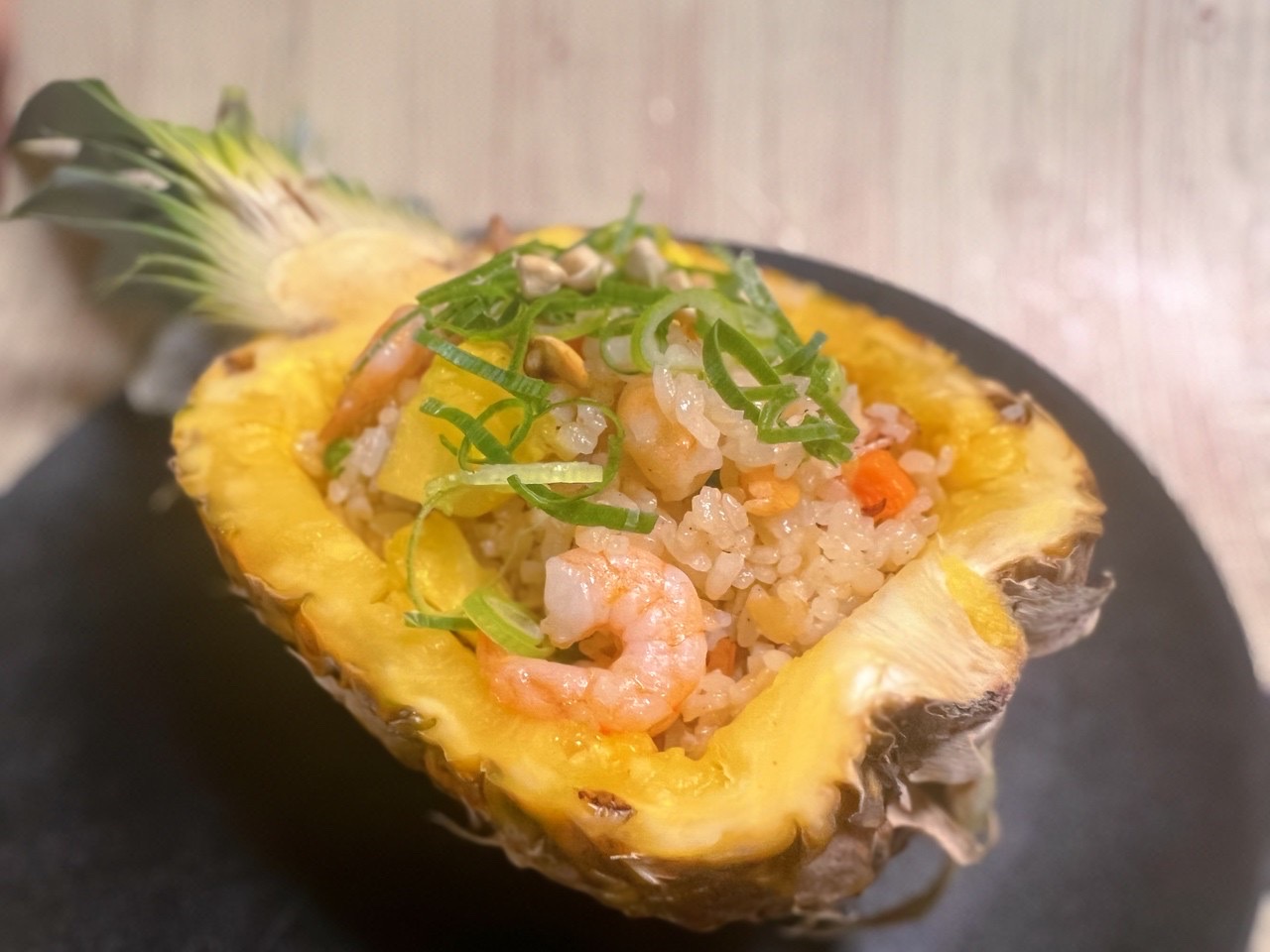 パイナップル炒飯、包焼き餃子、たません、極細モンブラン、ご飯物、ドリンクなど