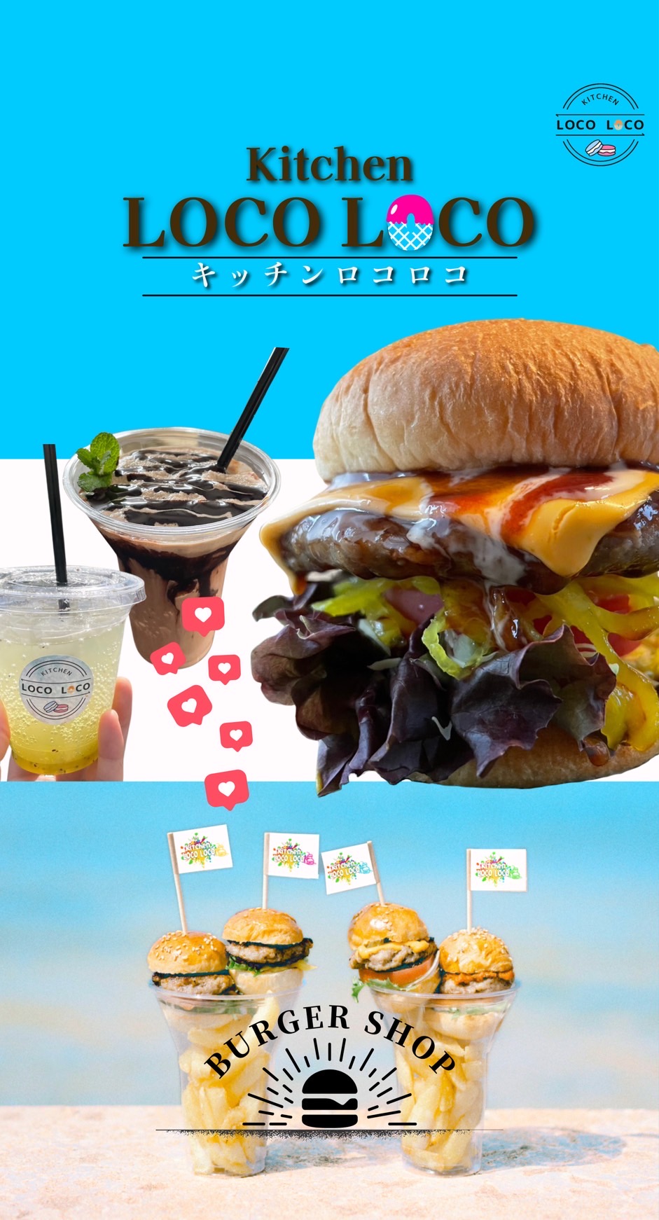 バーガー / ミニバーガー / ポテト / ドリンク(ソフトドリンク、フラッペ、オリジナルドリンク)