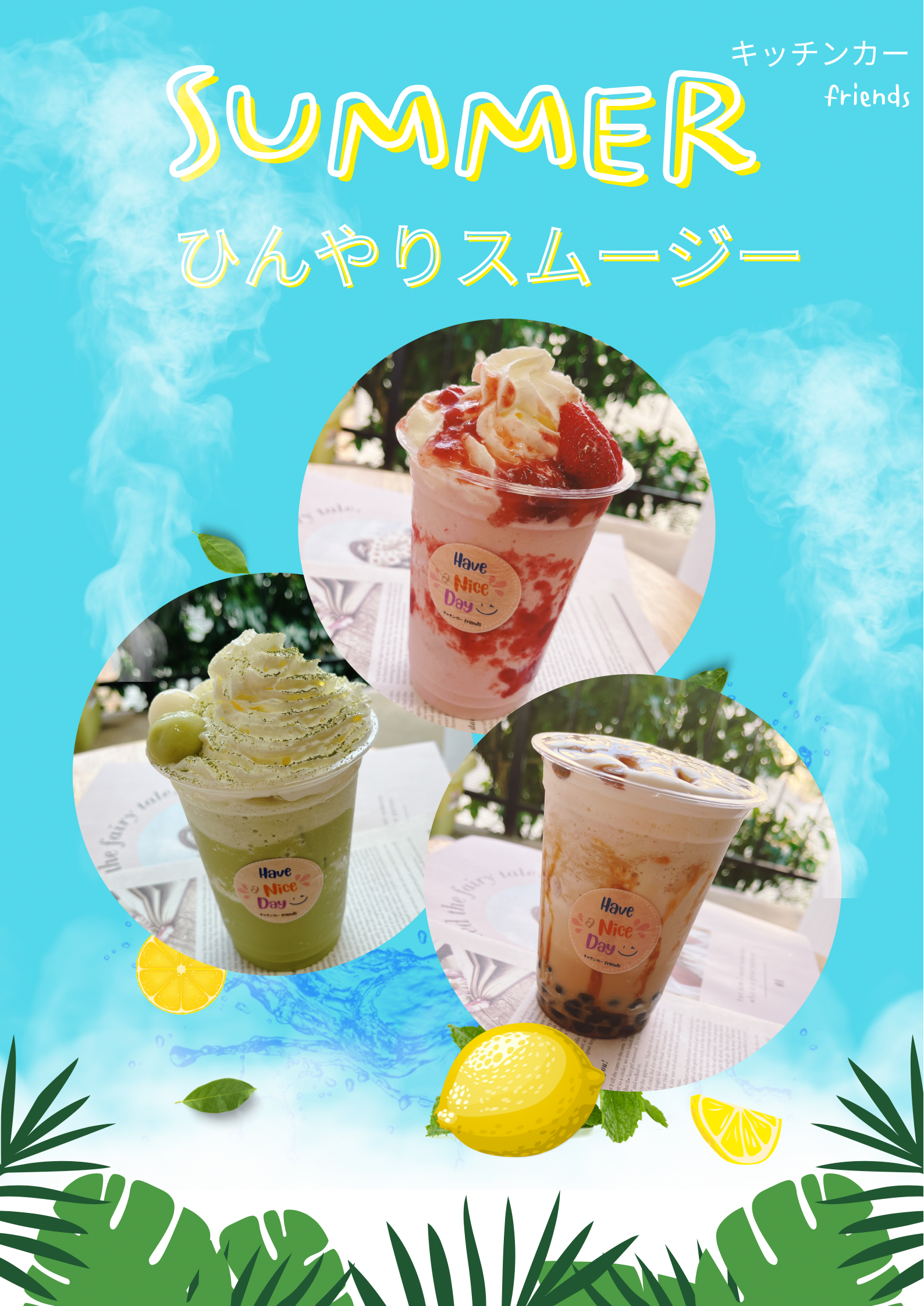 スムージ、ドリンク、フライドポテト、焼肉丼、油淋唐揚げ丼、チキンライス、チャーハン
