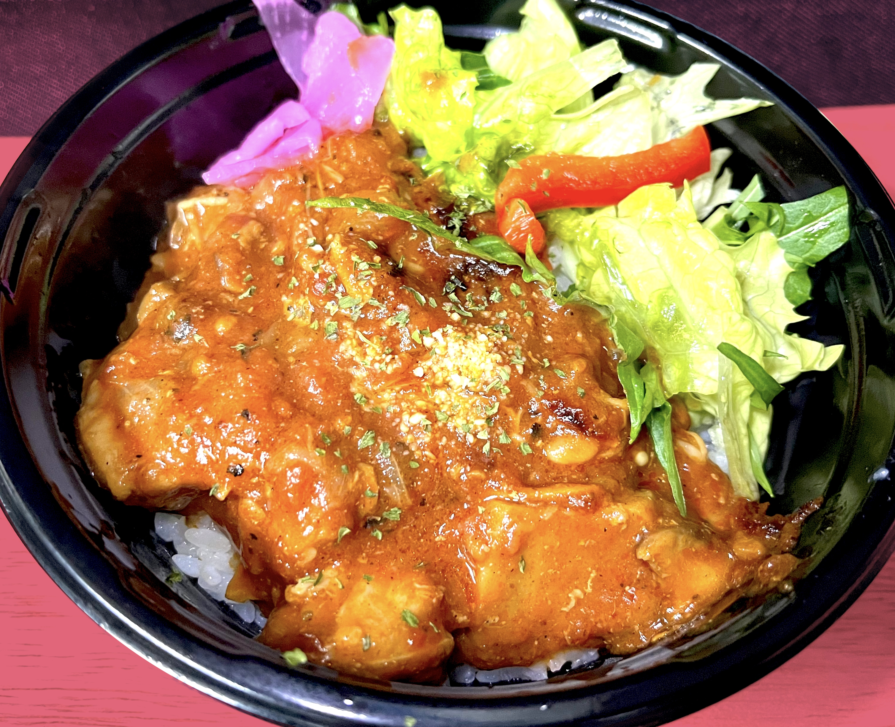 オイスターソースとホタテの貝柱出汁で味を調えたうまみたっぷりの丼です!