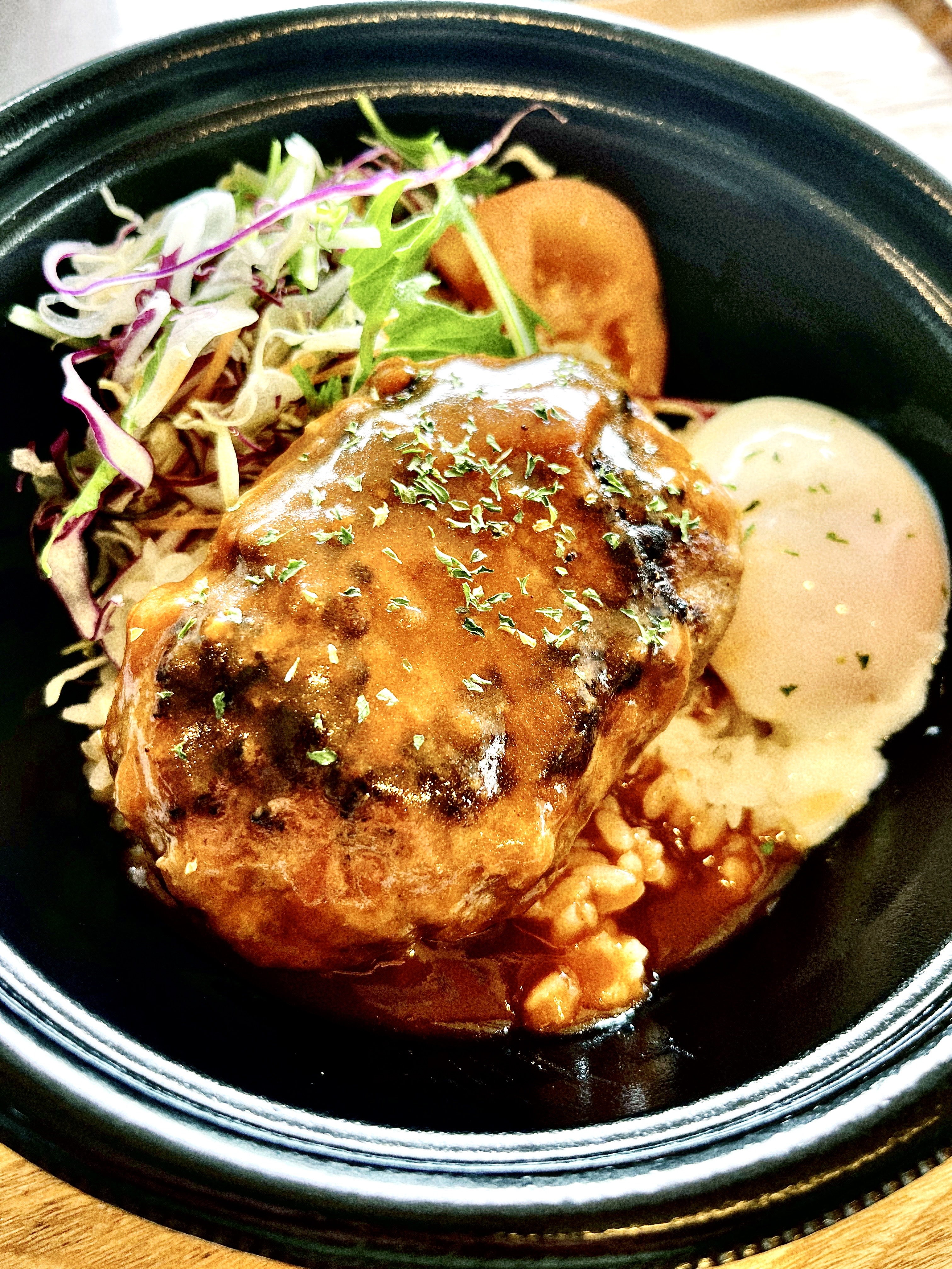 国産和牛&新潟燕市吉田産越後特産うんめ豚を使ったオリジナルハンバーグ料理