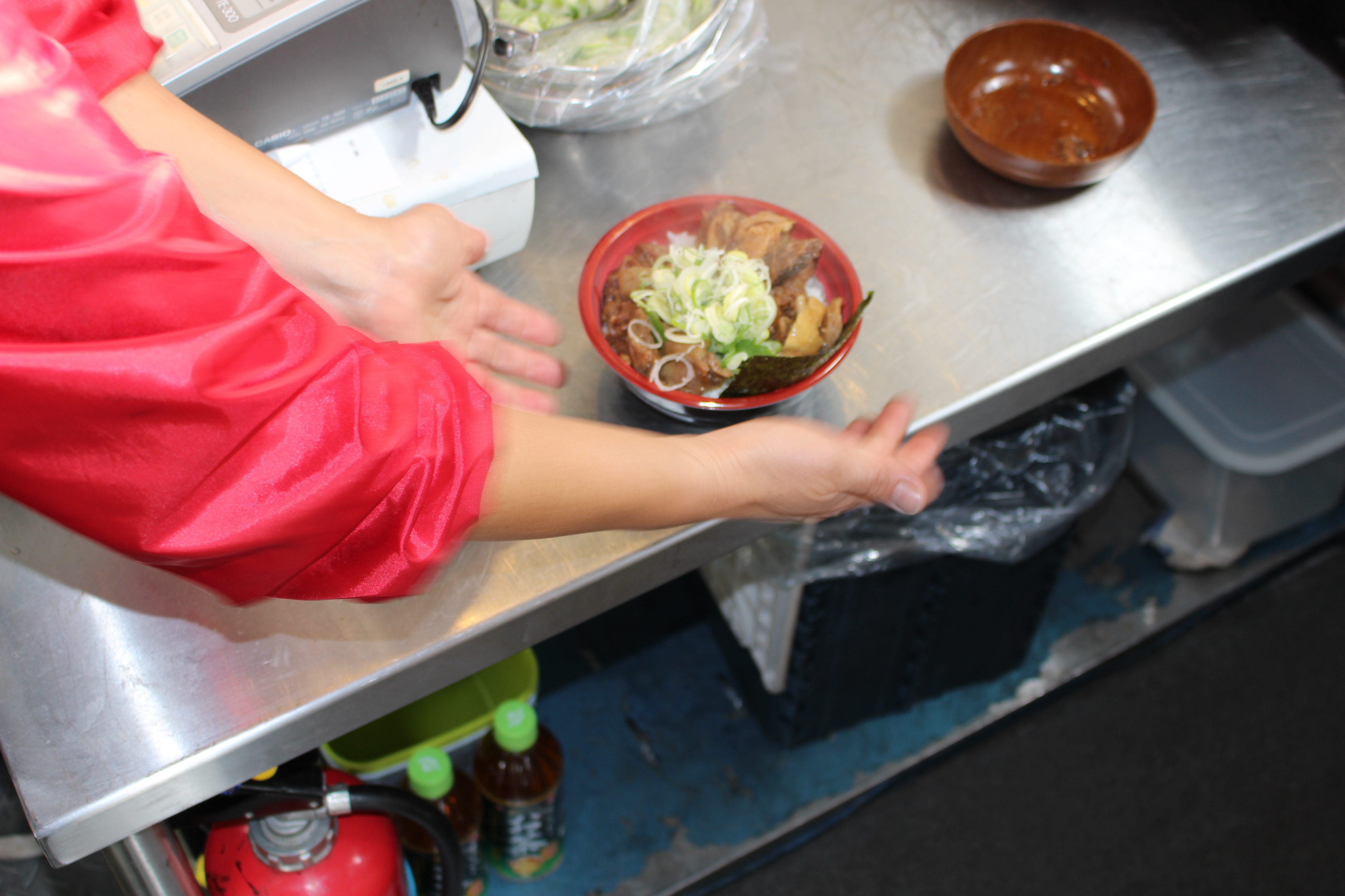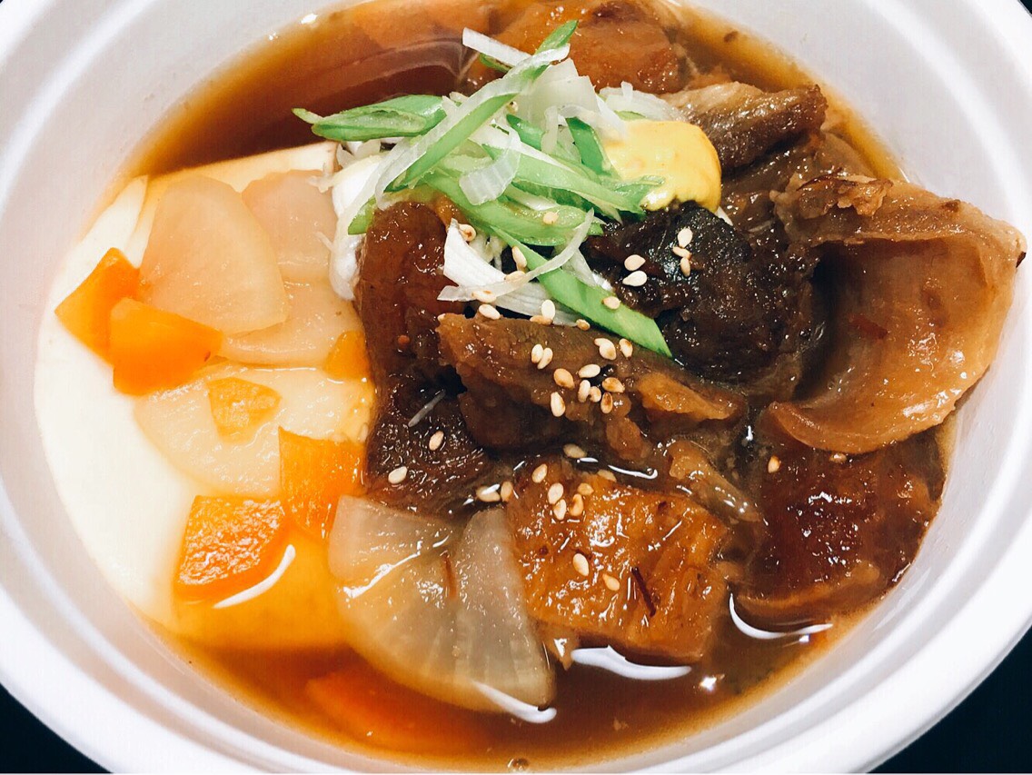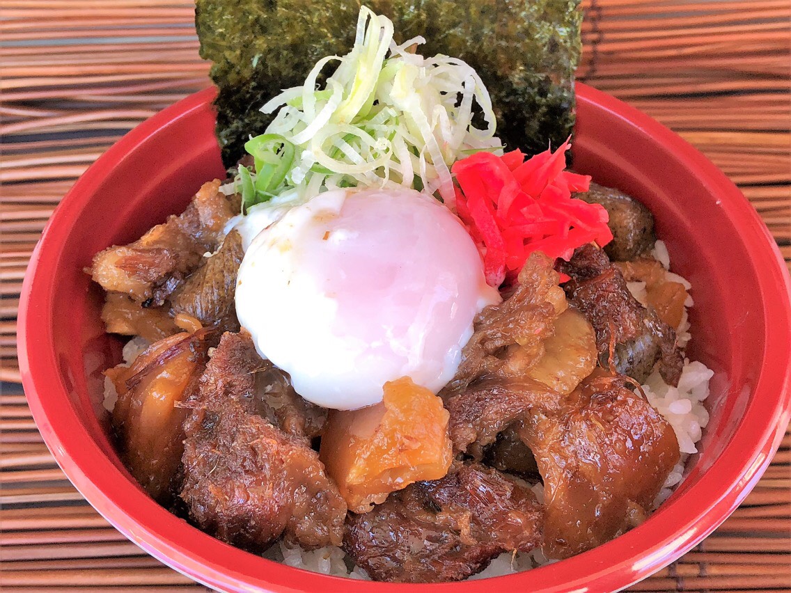 じっくり時間をかけて煮込まれた牛すじの煮込みを、豪快にアツアツのご飯の上にぶっかけた一品!時間をかけてしっかり煮込まれているので、牛すじのお肉の部分には味がしみ込み、すじはぷるぷるで、口の中であっという間に溶けてしまいます。甘辛く味付けされた煮込みは、ご飯との相性抜群!煮汁がしみ込んだご飯が、もうたまりません♪
