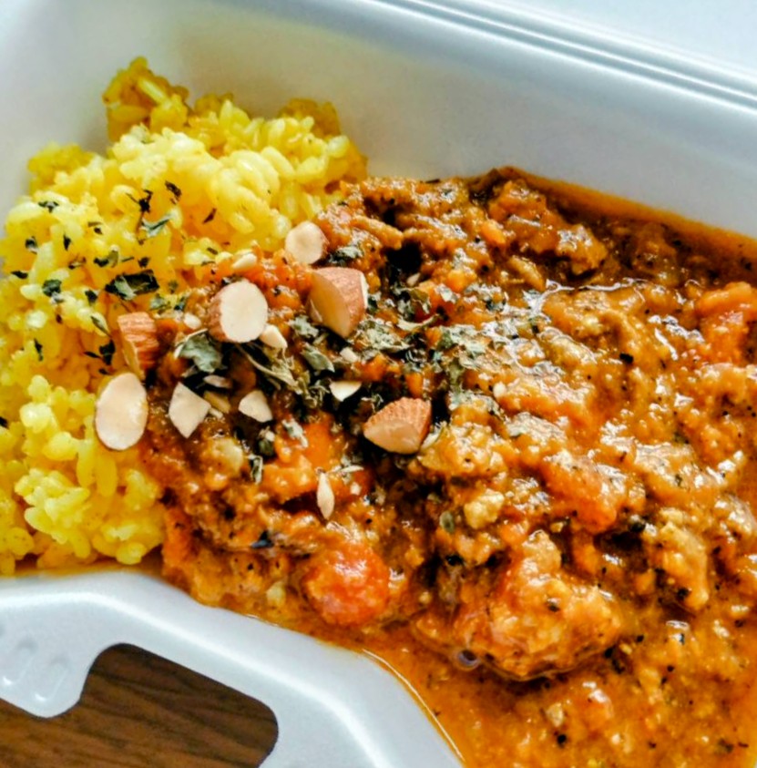 スパイスに漬け込んだ鶏肉のガッツリ系メニュー