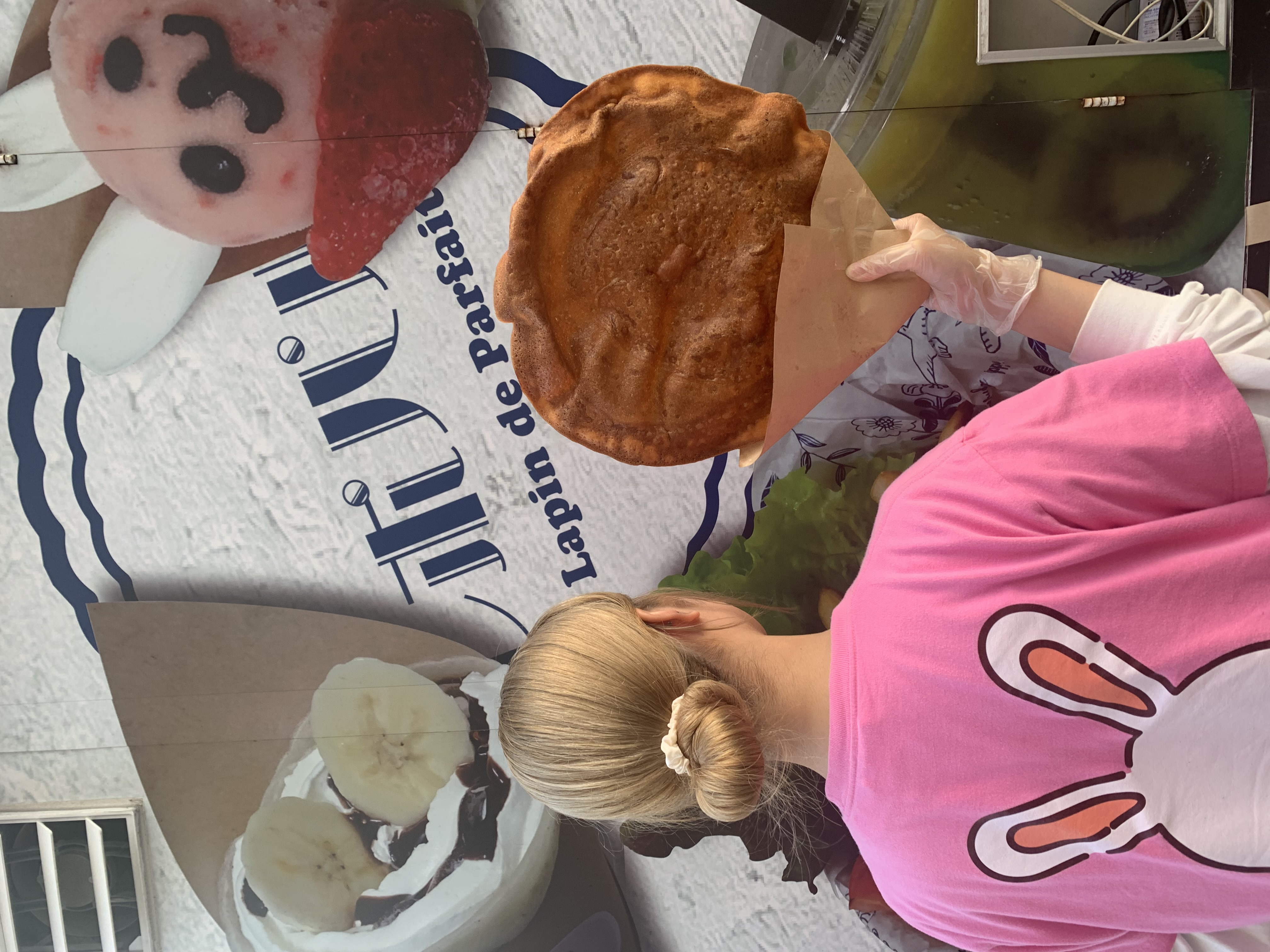 当店はウサギをイメージしたキッチンカーで、クレープもそれを意識して当店の名前を略したレポパルが大人気です^_^