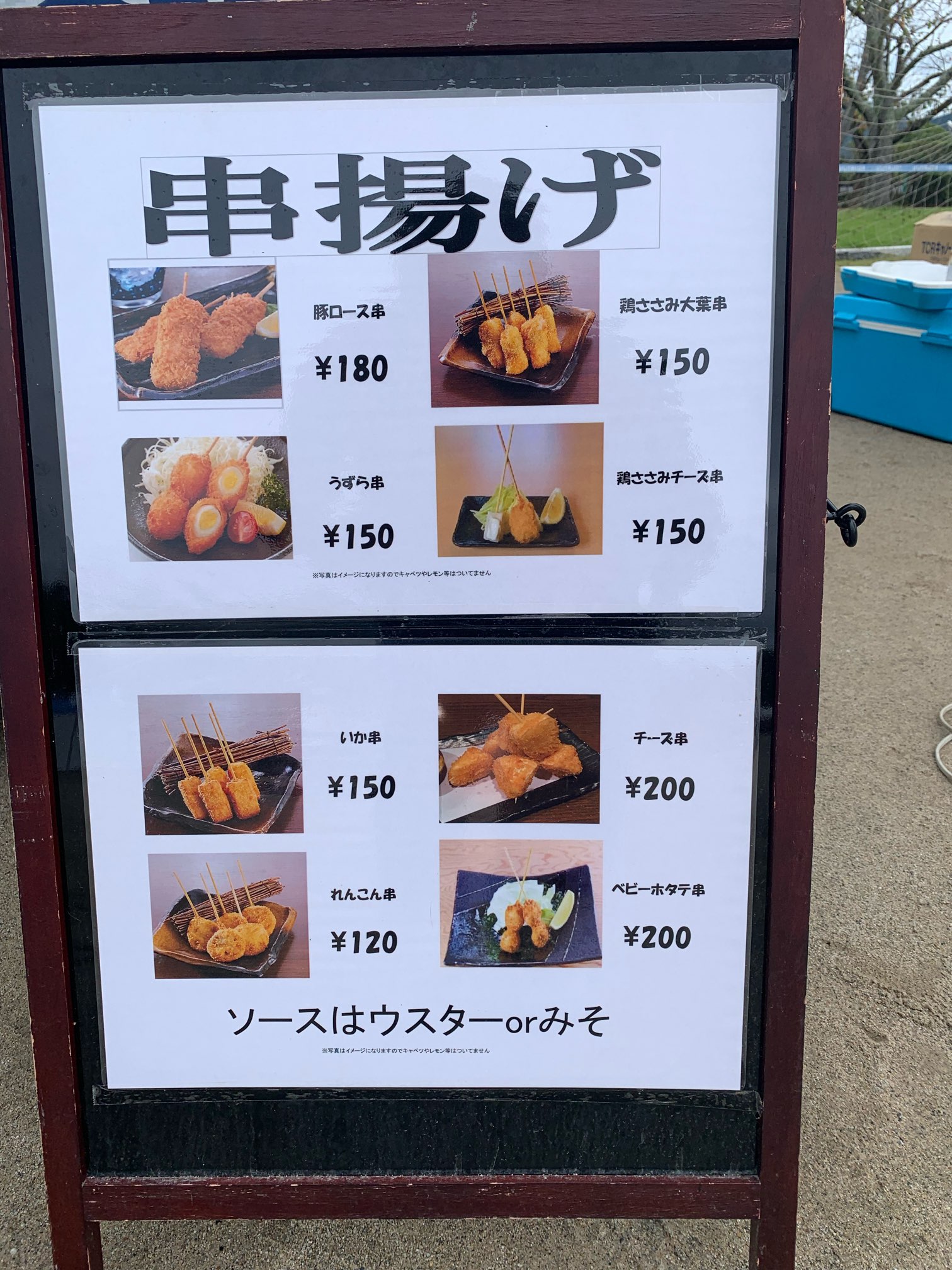 串揚げ8種に、イベントによっては揚げたこ、限定でクレープを揚げてせんべい風にしたクレープせんべい🍘と種類もございます。