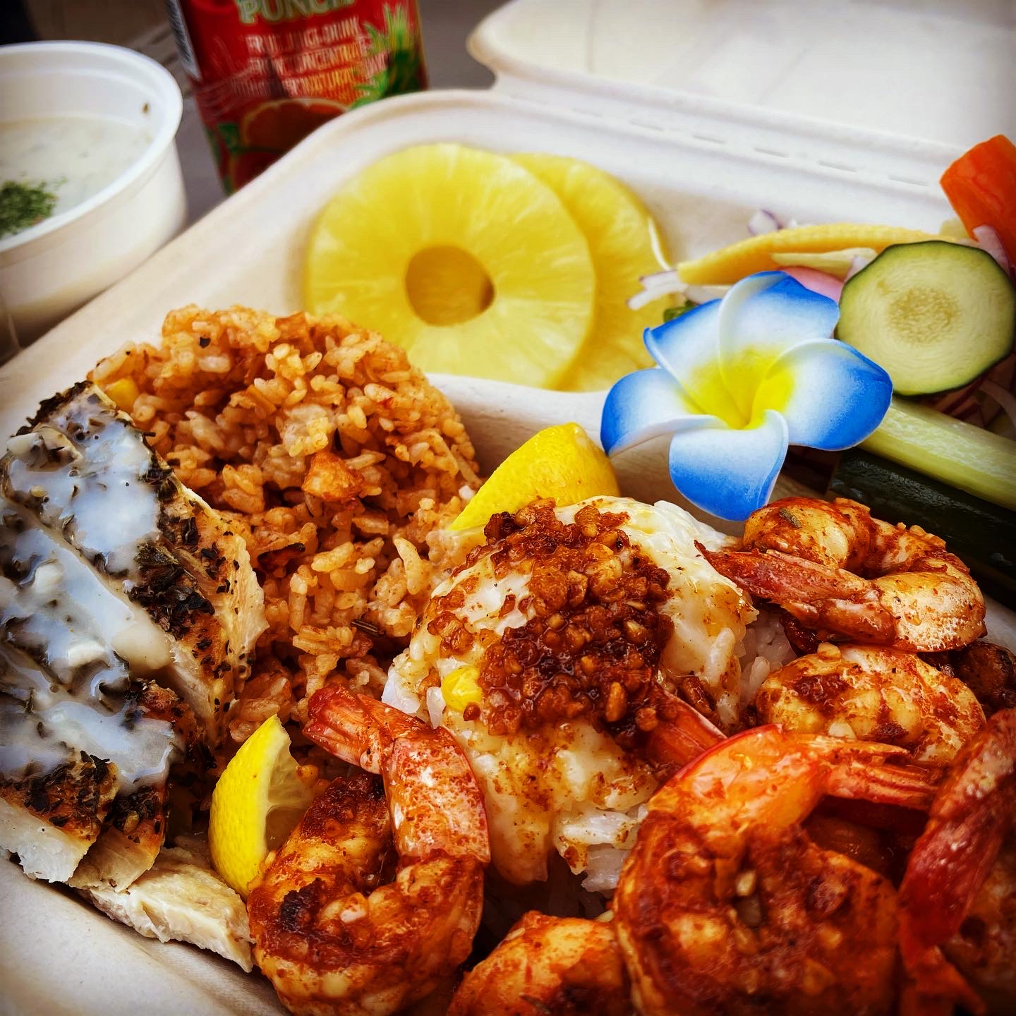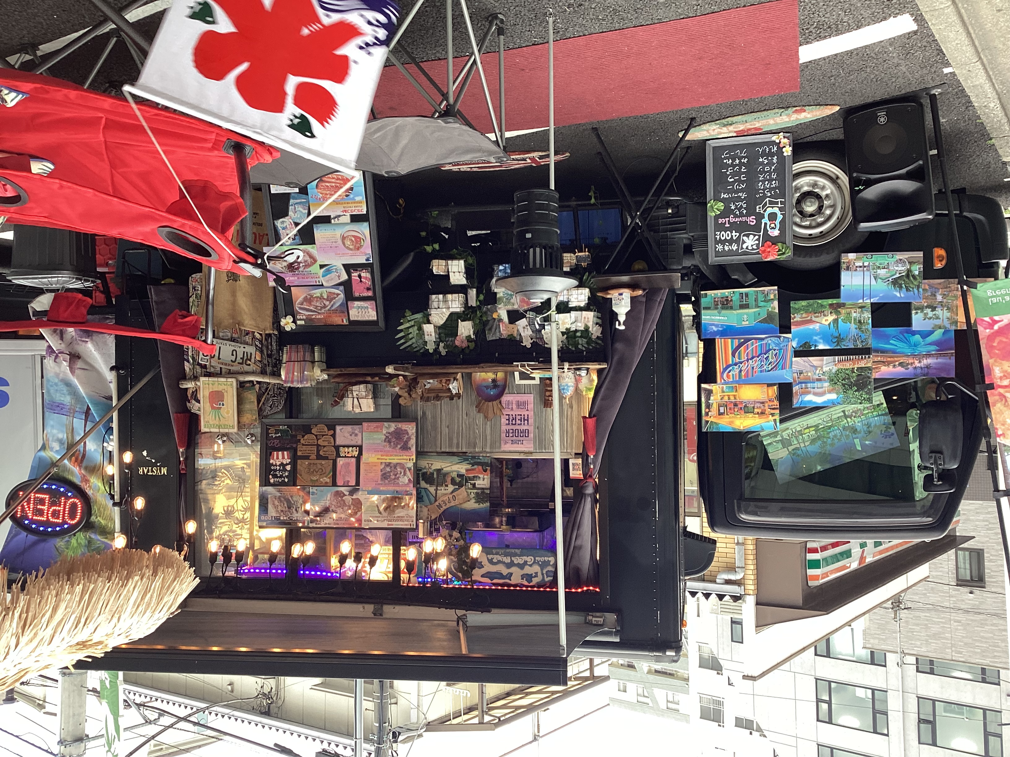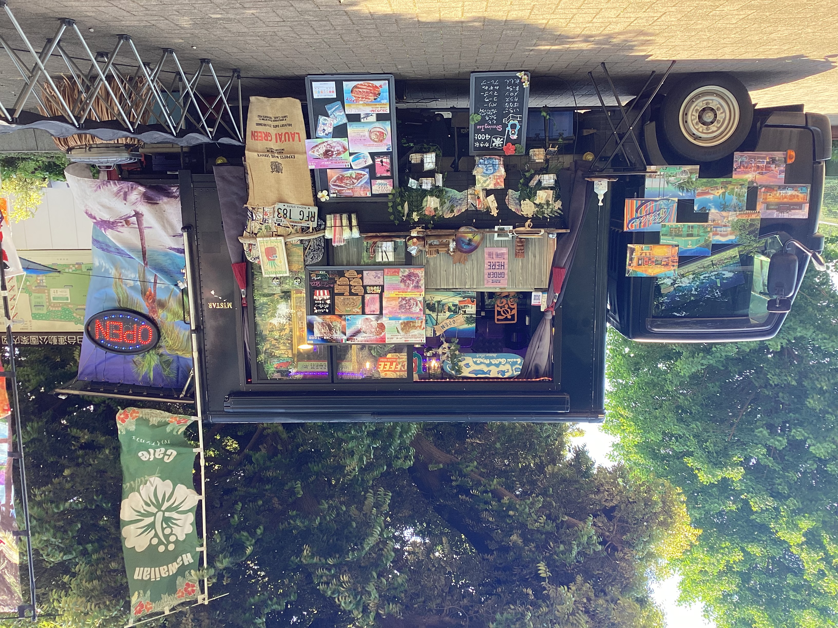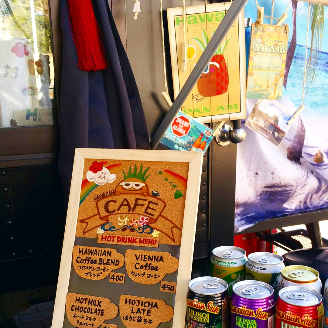 ガーリックシュリンプ、チキンのオーブン焼き、野菜たっぷりロールパニーニ、ホットスープ、ハワイアンサン、コナビール、ハワイアンブレンドコーヒー、ウインナーコーヒー、ホットミルクチョコレート、ハワイアンアクセサリー、ハワイアン雑貨