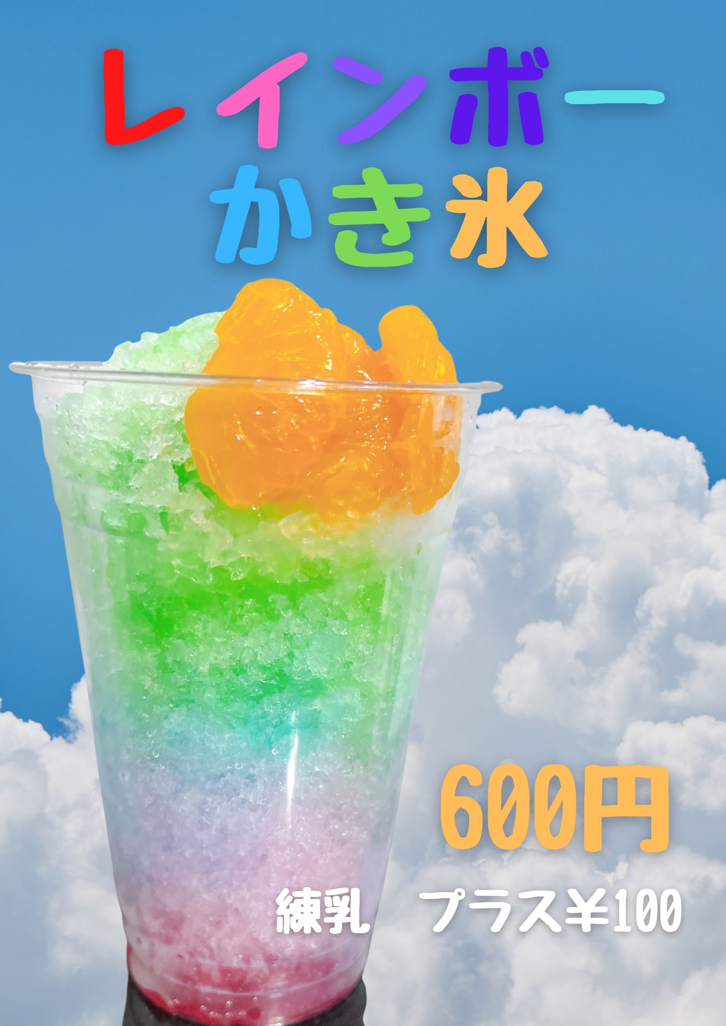 かき氷、ソフトクリーム、パフェ、フルーツ飴、焼肉丼、カレーライス、サンドイッチなどイベントに合わせてメニューを変えて販売しております。