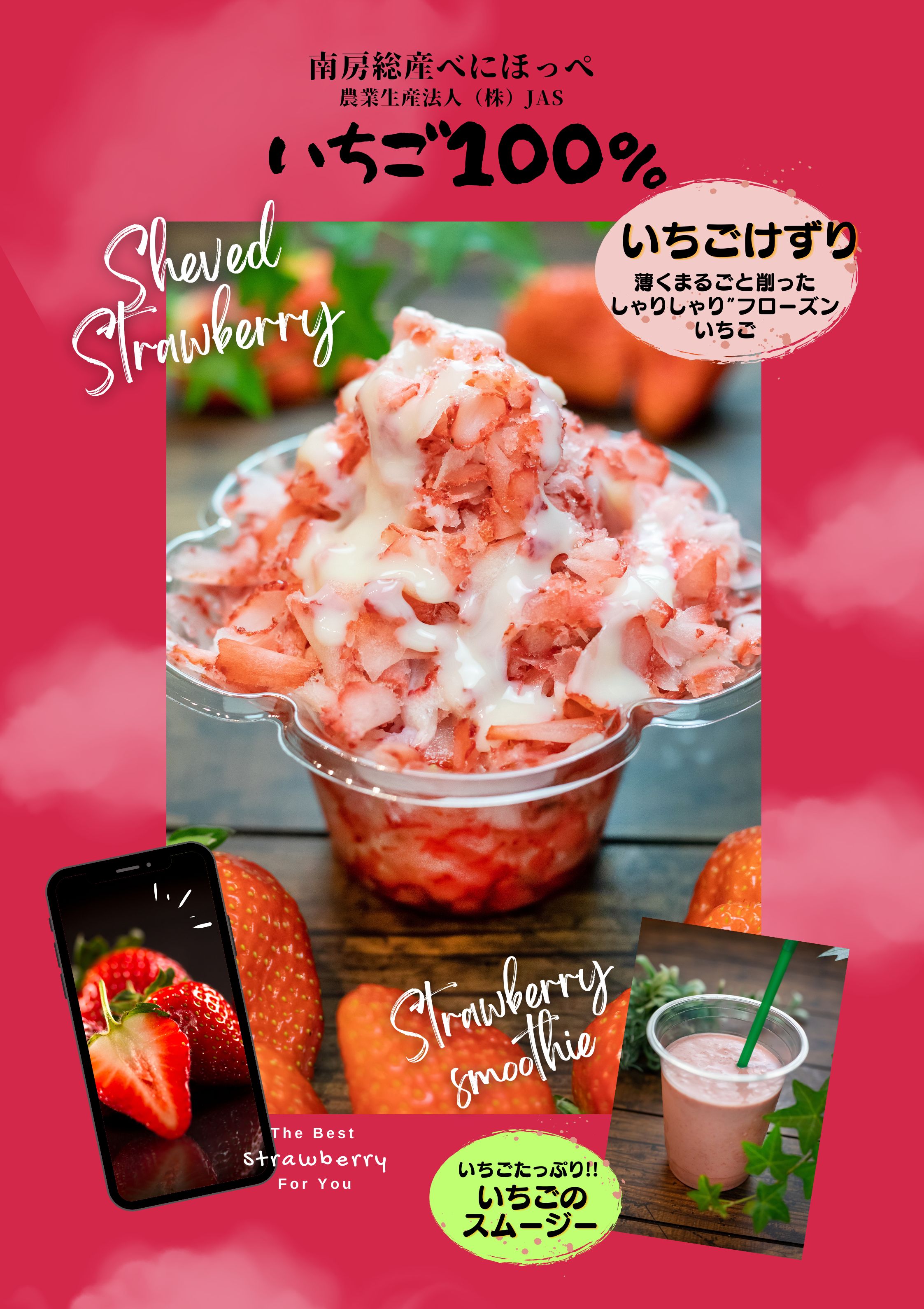 苺農家さんから直送してもらってますので、季節問わず苺を使ったドリンクやスイーツを提供できます。