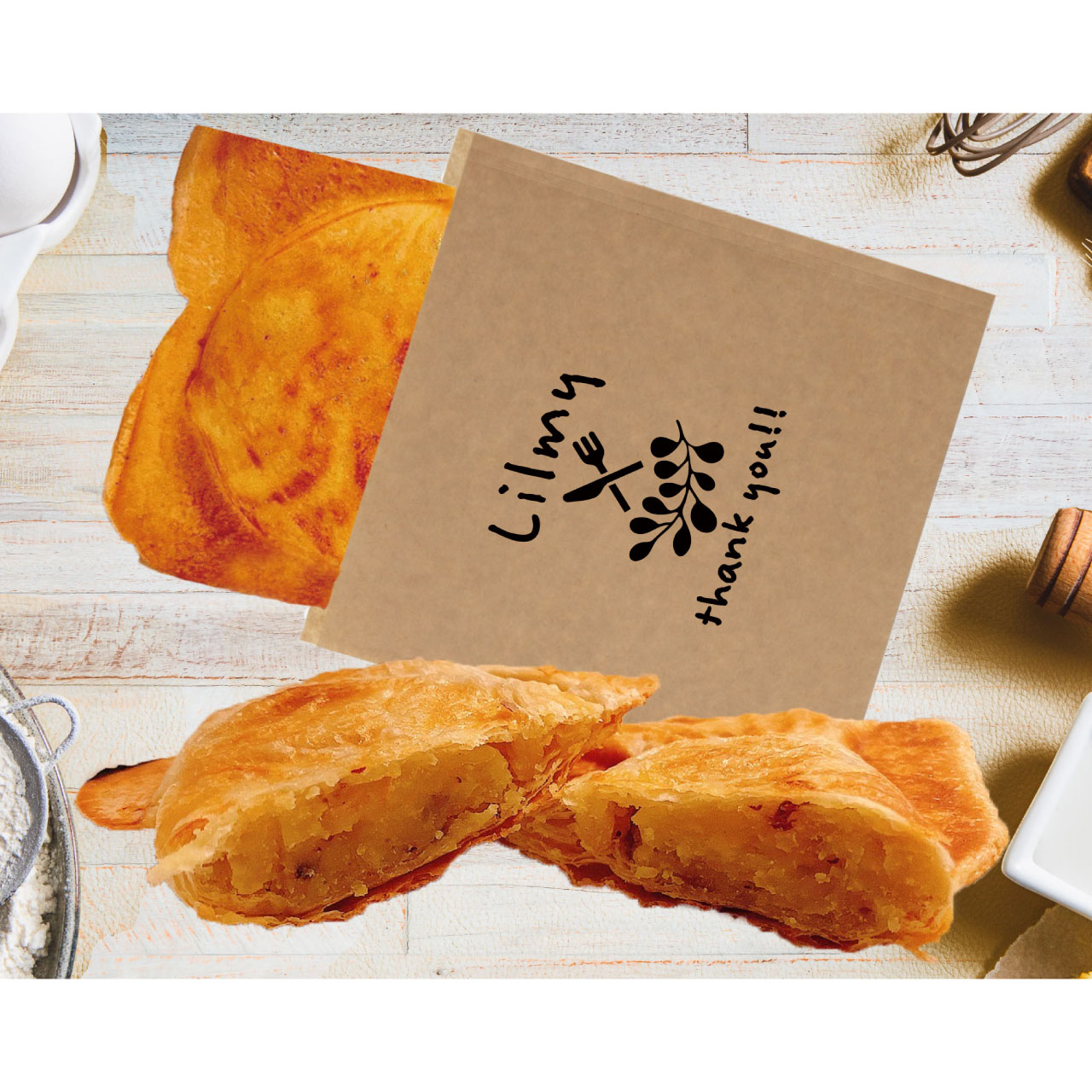 ガス火でじっくり焼き上げる事で溢れ出す旨みとパイ生地ならではの『サクふわ』食感をお楽しみください。