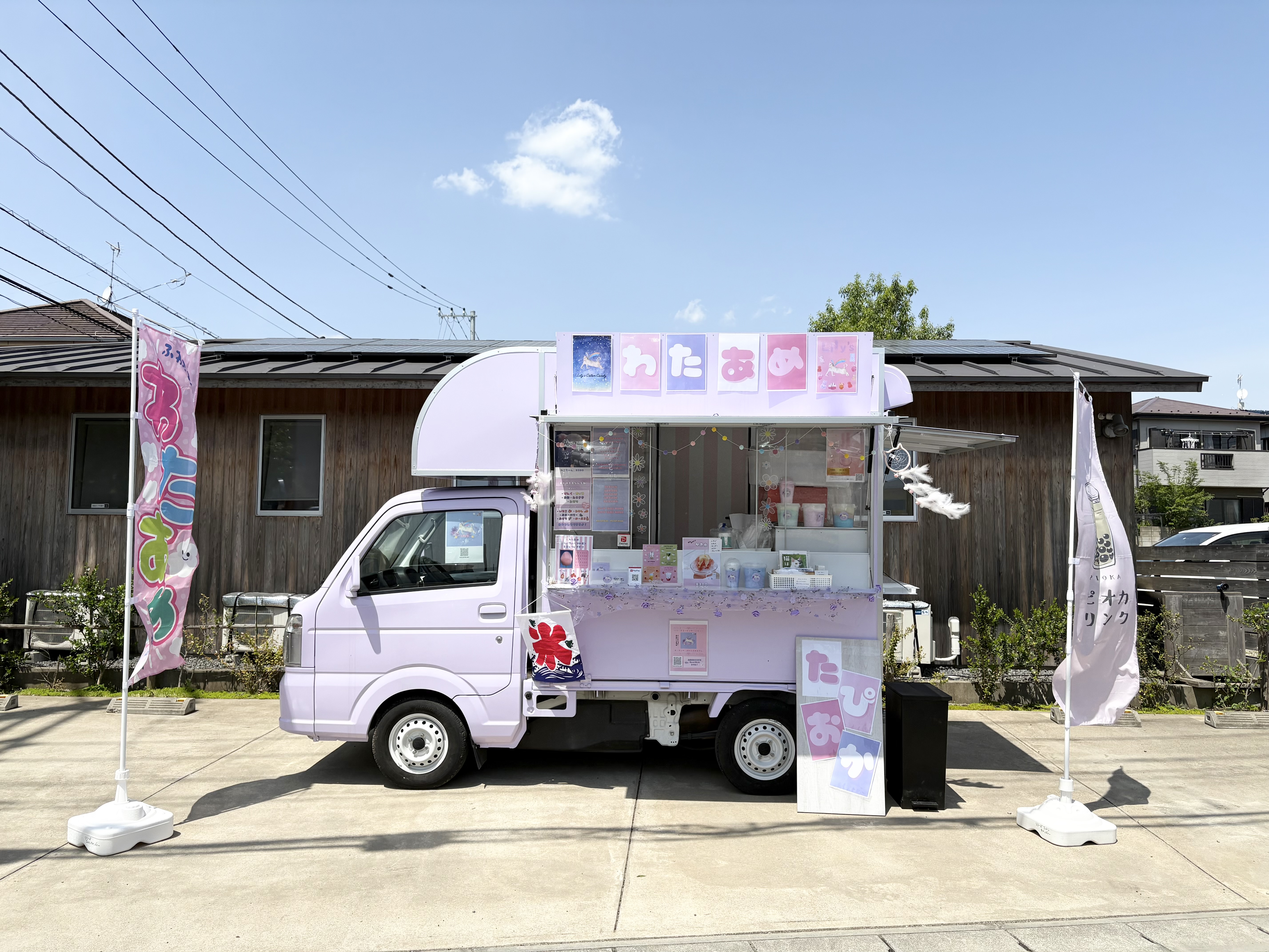 お子様が喜ぶかわいいキッチンカー!本物のフルーツを使ったわたあめ。猫ちゃんわたあめはお子様に大人気です。こだわりのタピオカは大人にも大人気。