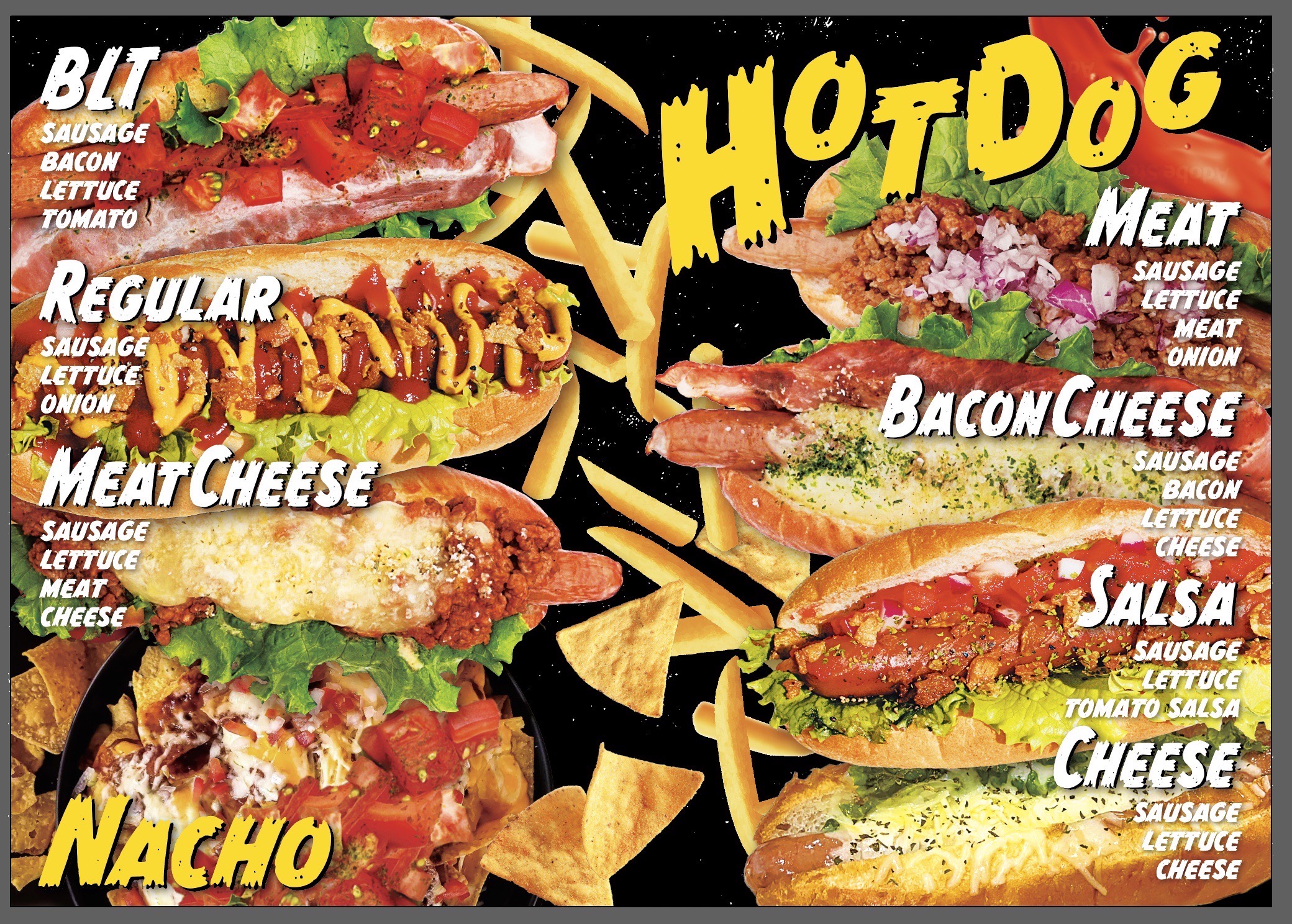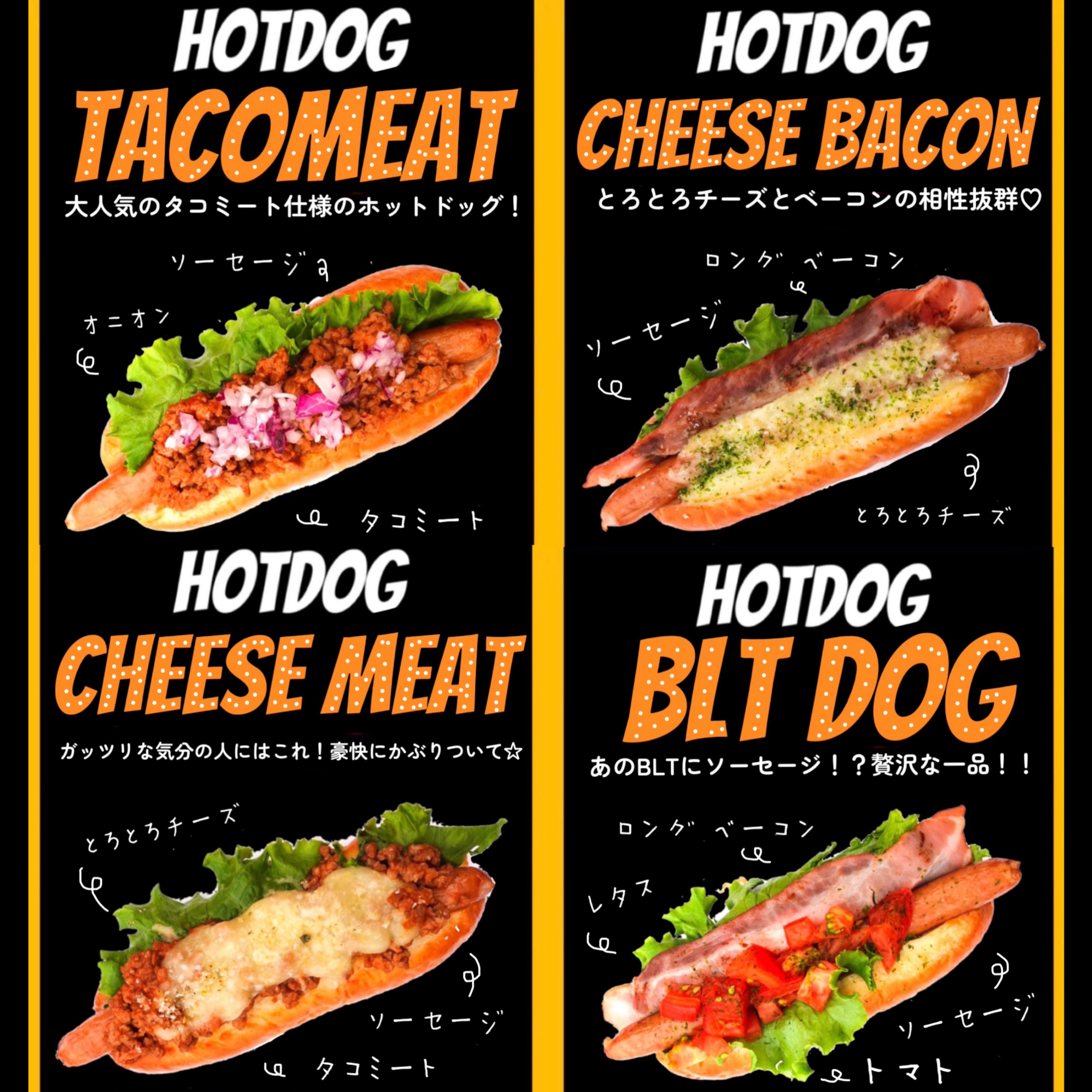 多種多様なアメリカンなホットドッグは王道のメニューから出会ったことのない様なメニューまで!全てのメニュー辛さ0なのでお子様から食べられます!大人の方が楽しんで頂ける様々なソースもご用意してあるので自分好みにアレンジ⭐︎