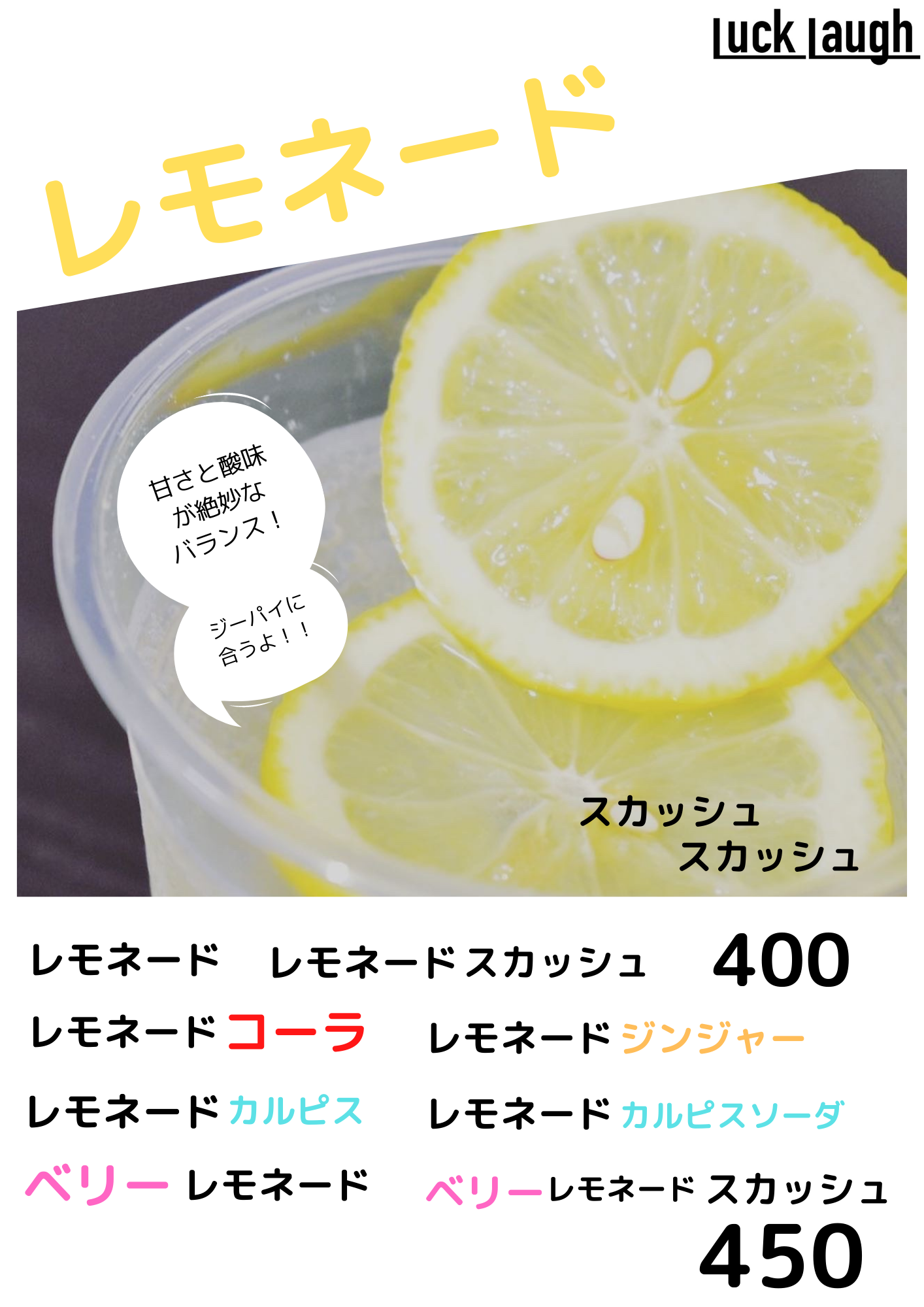 当店のレモネードはジーパイに合うように改良に改良を重ねたオリジナルレシピです!もちろんレモンのカットから全て手作業で行っており完全に自家製となっております!レモンの爽やかな香りを是非お楽しみ下さい!!