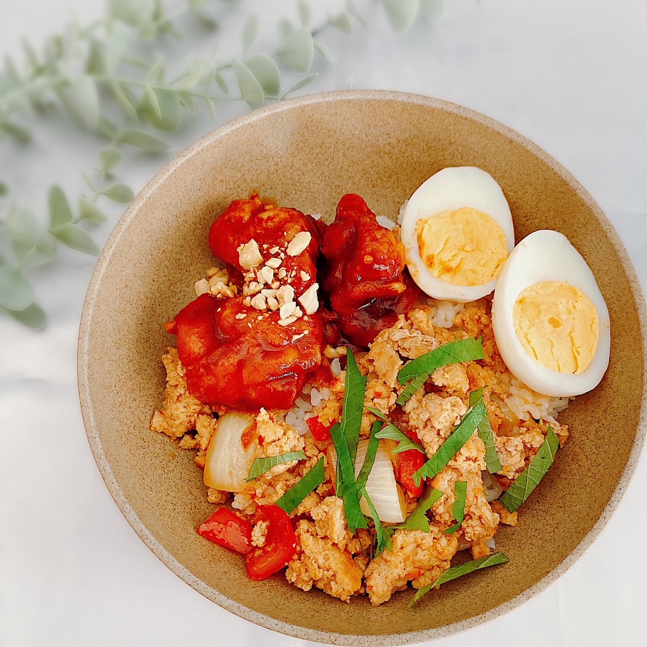店舗でも提供している和風にアレンジしたガパオライス。日本人の好みに合わせて作っているので誰もが大好きな味です。ピリッと辛味を利かせているので暑い夏にぴったりです。