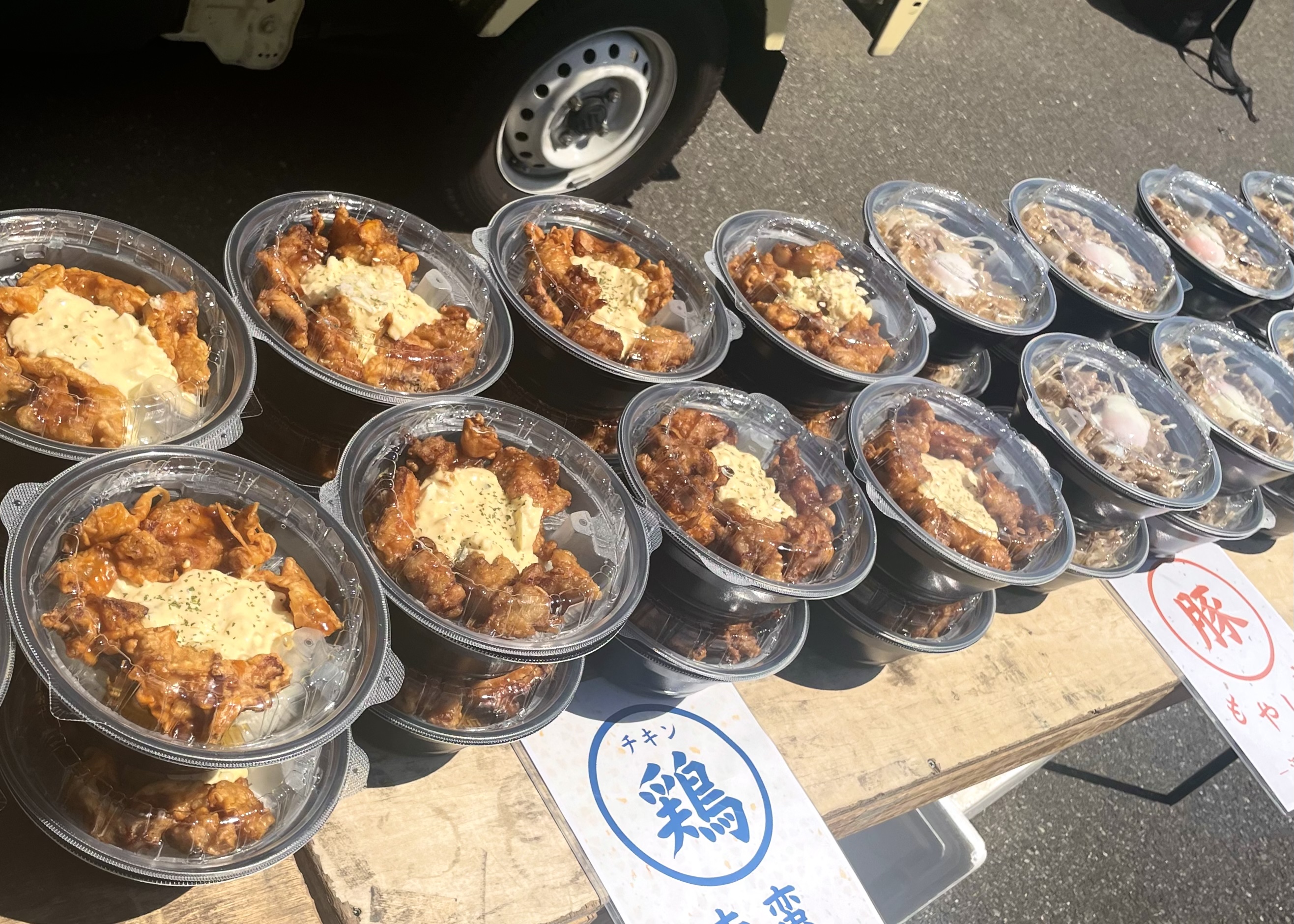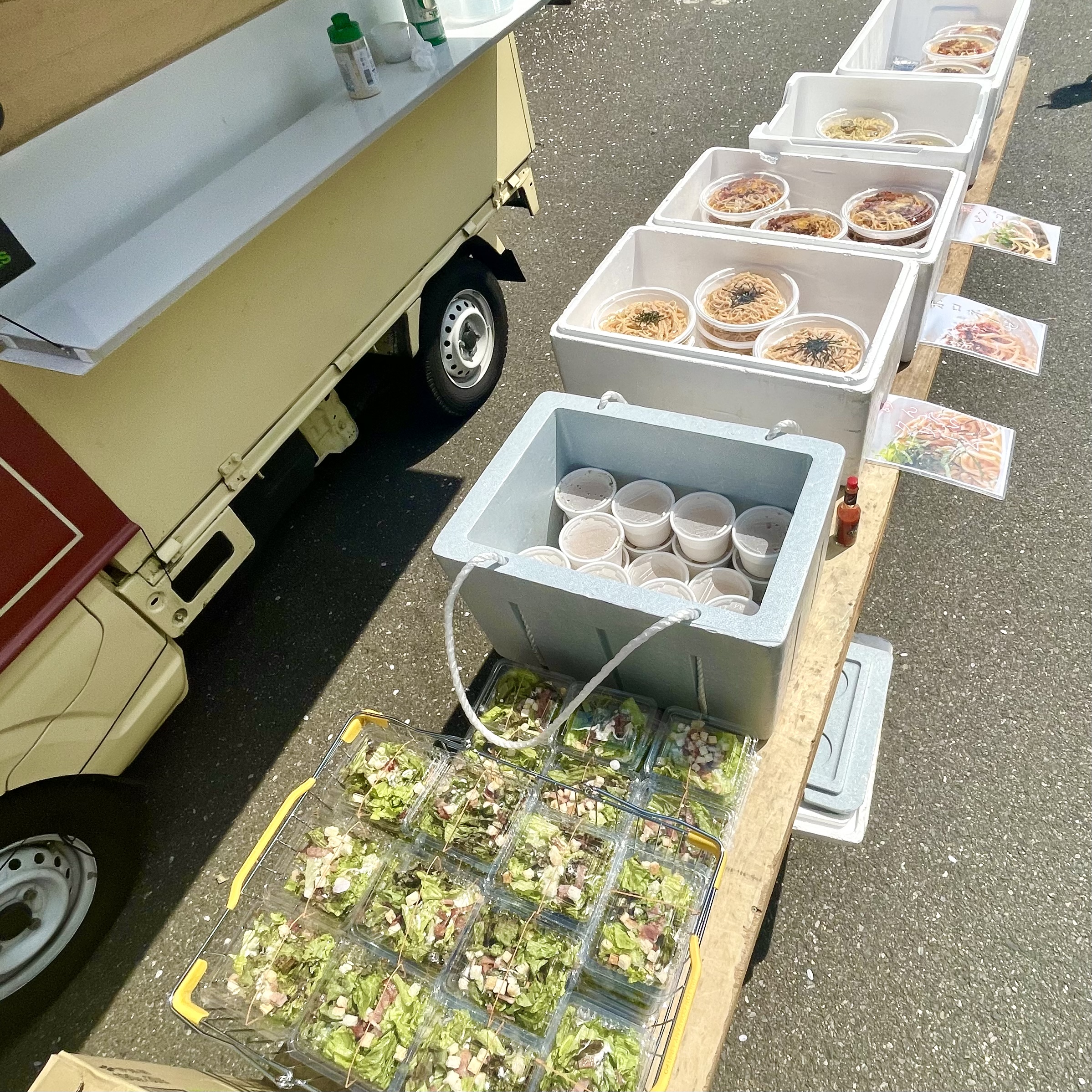軽トラックタイプのキッチンカーですので、高さ2.5m以上、駐車面積1.5m×2.5mのスペースがあればどこでも出来たてのあたたかいお料理を提供できます!
