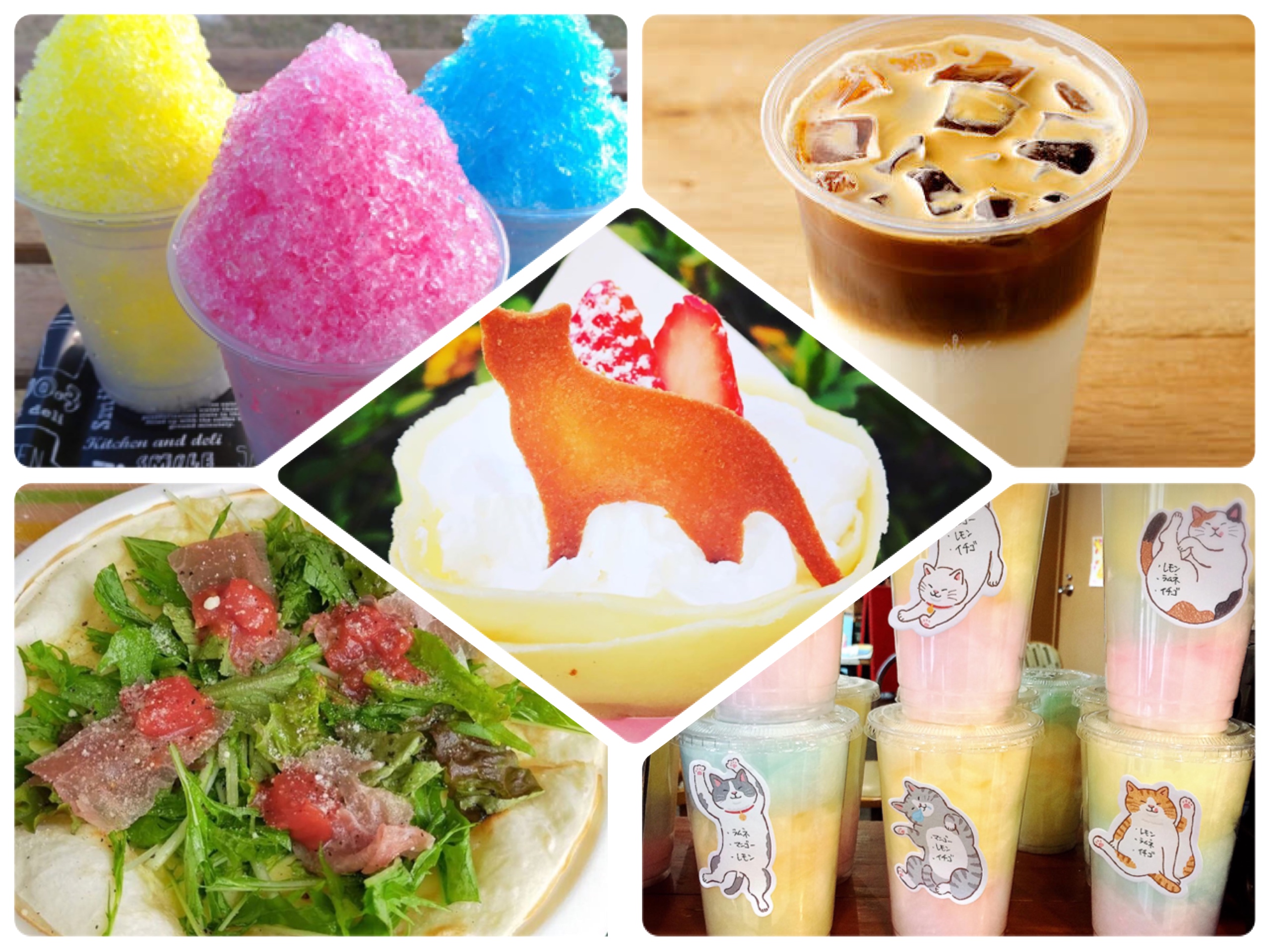 クレープ、コーヒー等のカフェドリンク、ワッフル、ピザ、コットンキャンディー、トルティーヤ、かき氷、キャラメルポップコーンなど