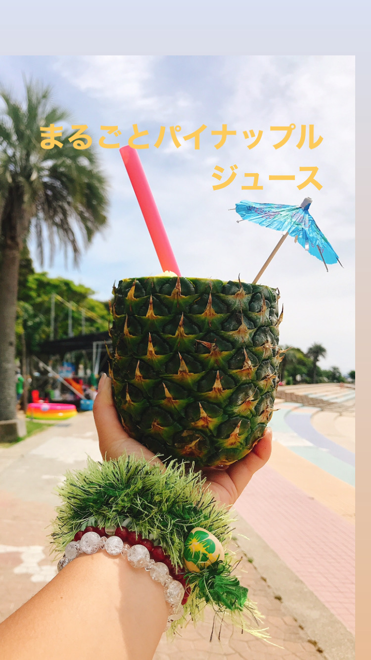 パイナップルの皮をそのまま器し、果肉だけを削りジュースにした。