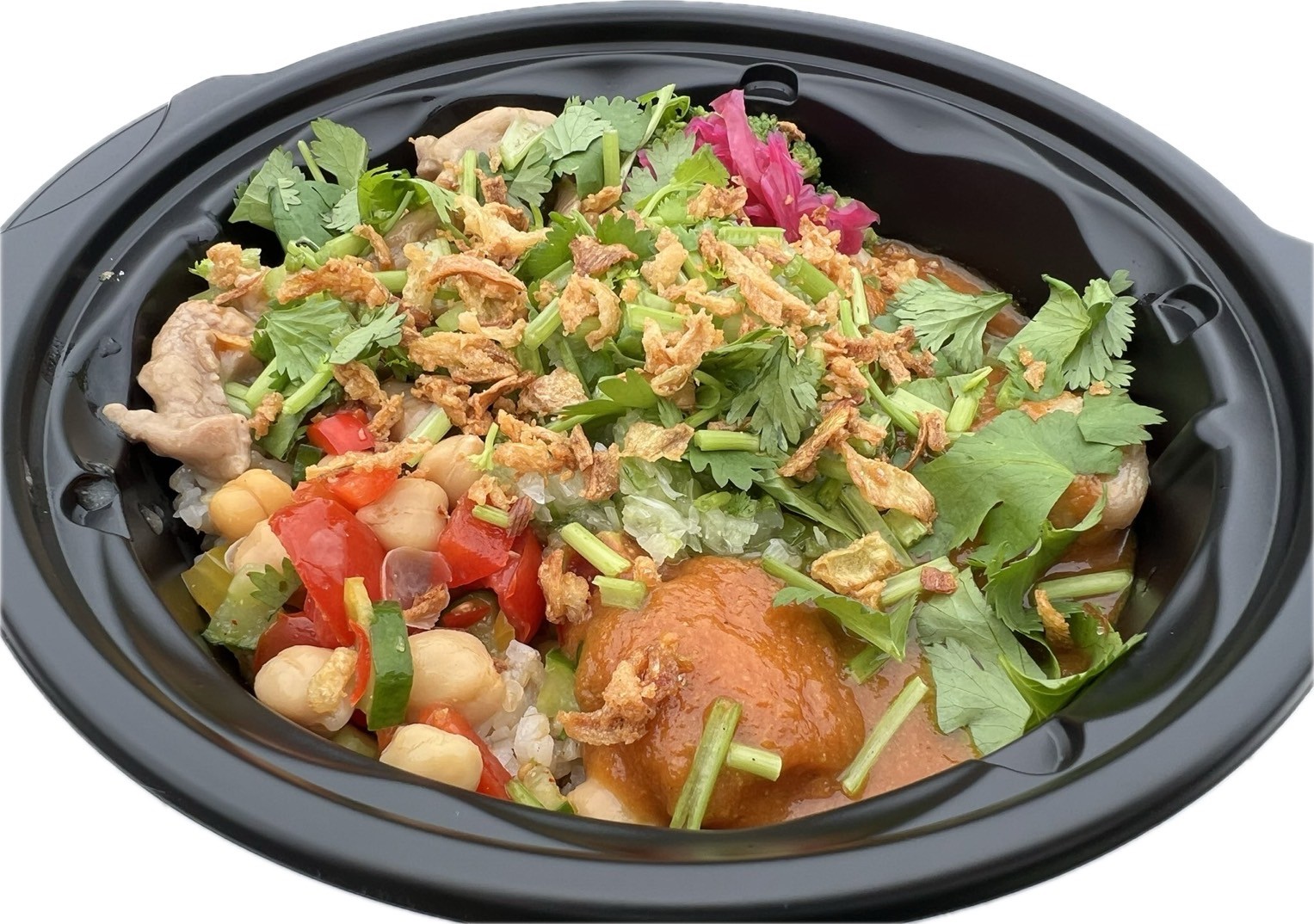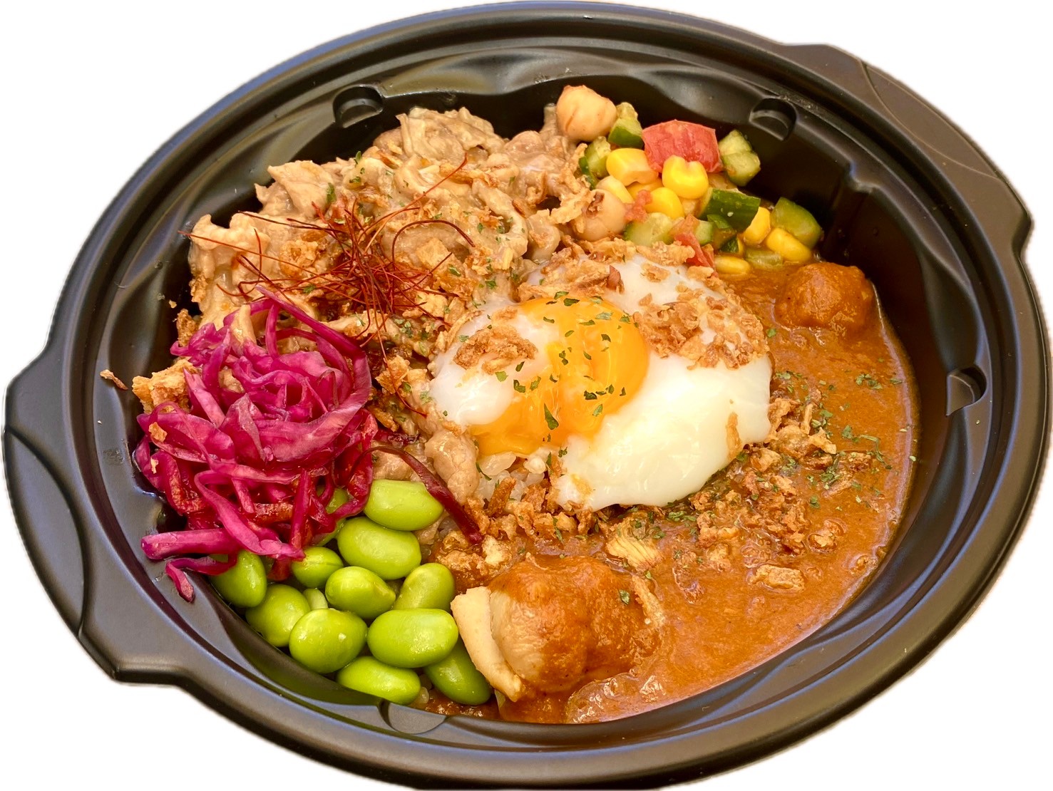 鶏もも肉の和風コンフィ、グリルチキン、白ごま担担ポーク、mahanaオリジナルカレー