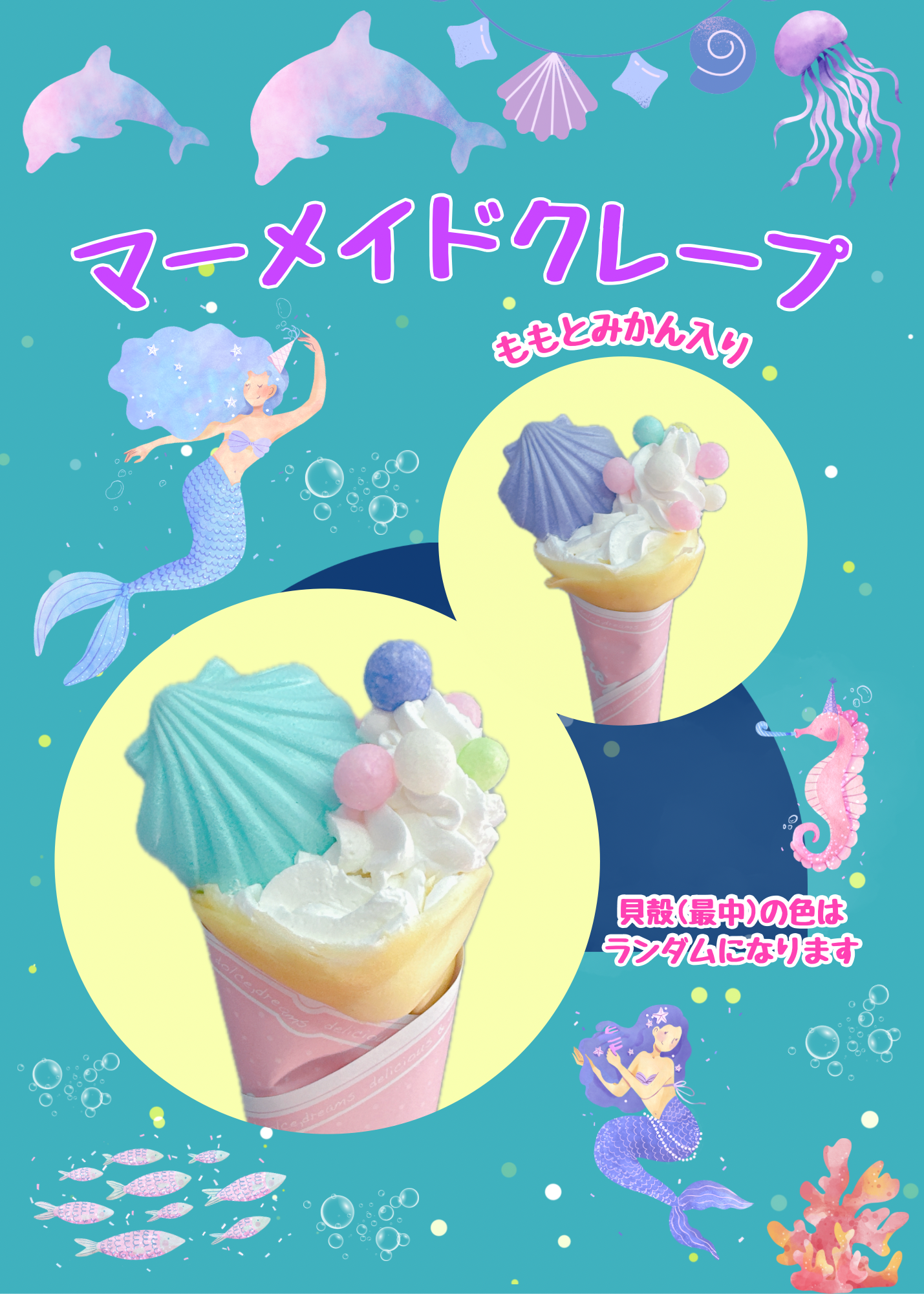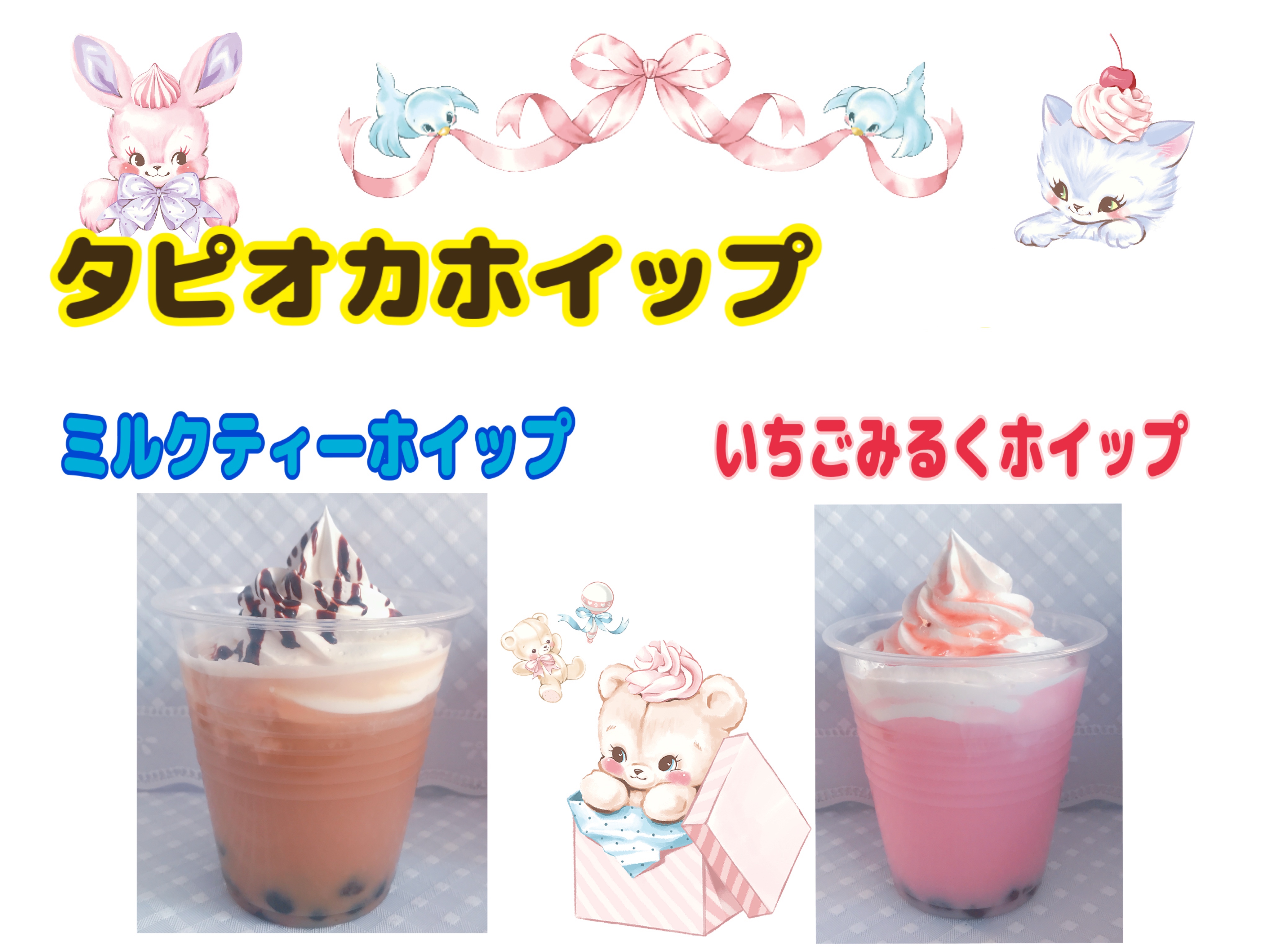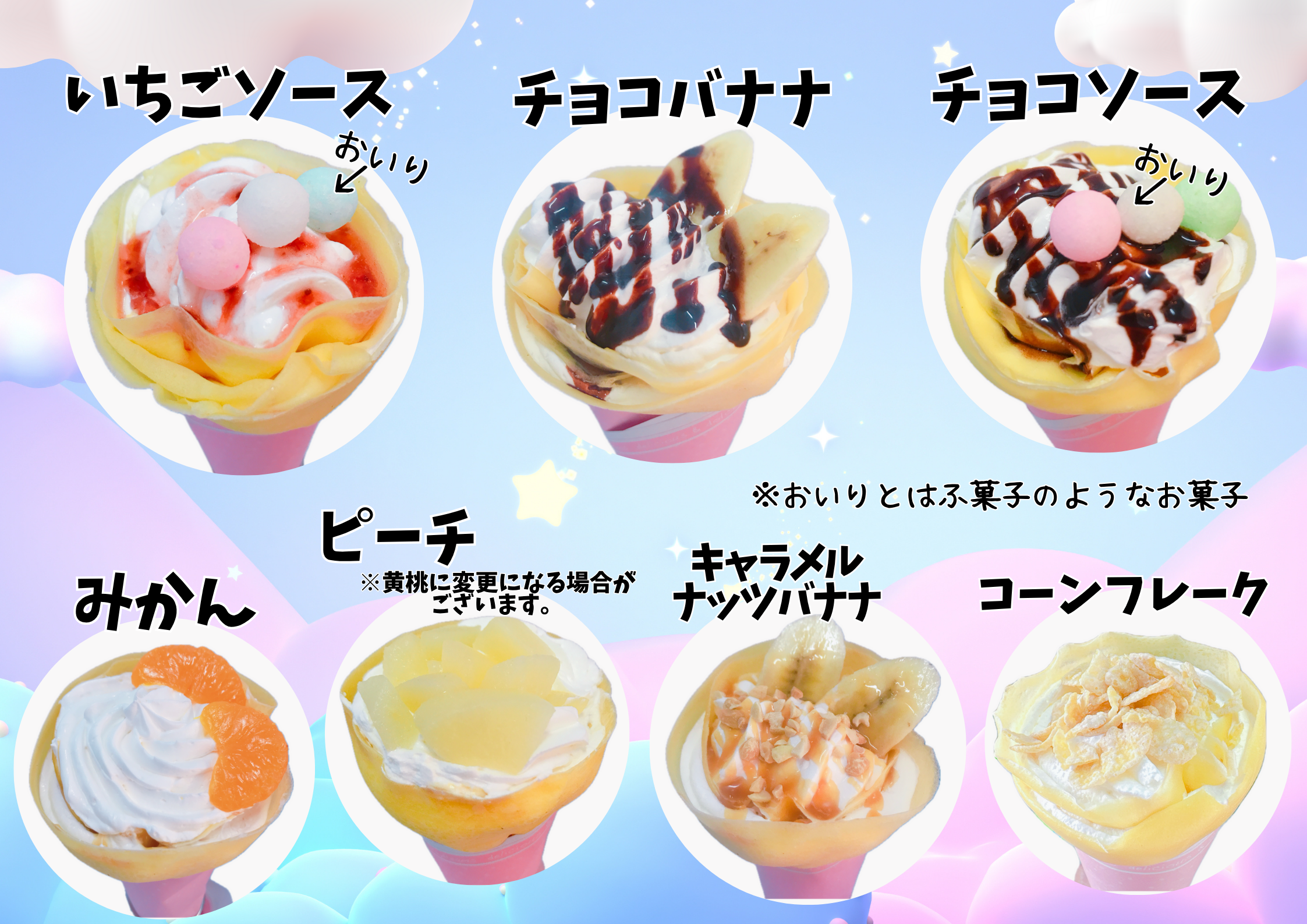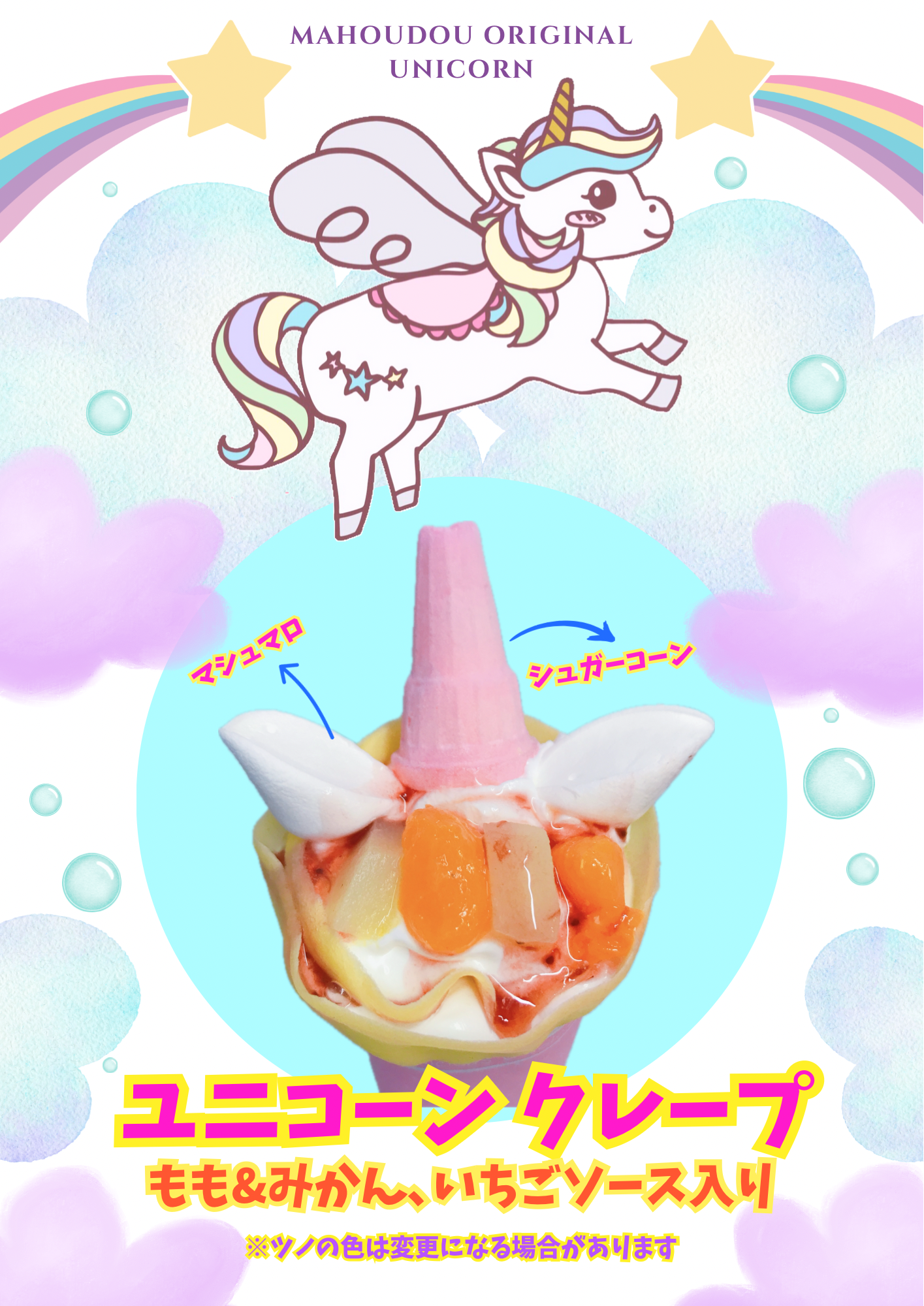 クレープ、タピオカ、ドリンク、ユニコーンカステラ