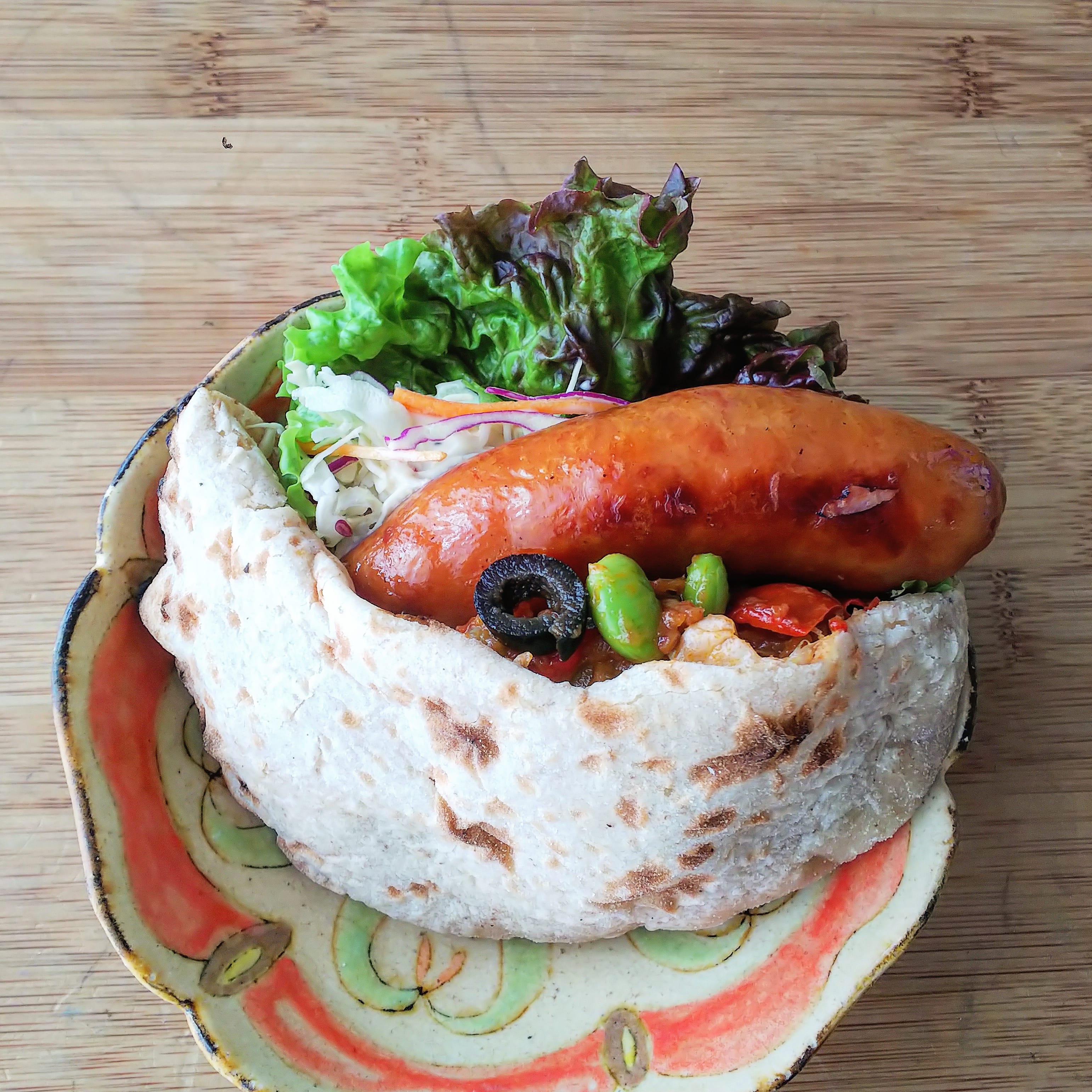 石窯ピザ、ピタサンド、窯焼きソーセージ、ハヤシライス、ドリンク