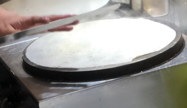 お客様の目の前で、一枚一枚丁寧に焼き上げます。