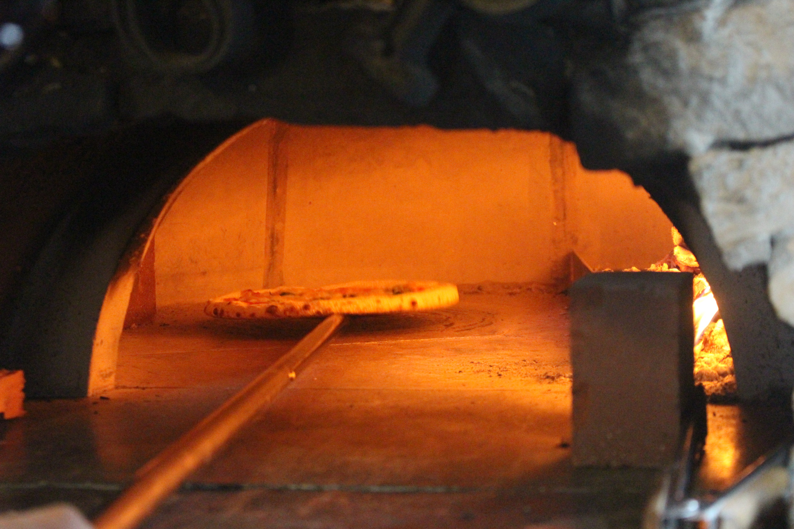 ピザ窯の中でも、薪、ガス、電気の3種類の釜があるが、マルハチピッツァは薪窯を採用。ピザを美味しく焼き上げるための温度調整はまさに職人技。燻される風味は薪窯でしか味わえません。