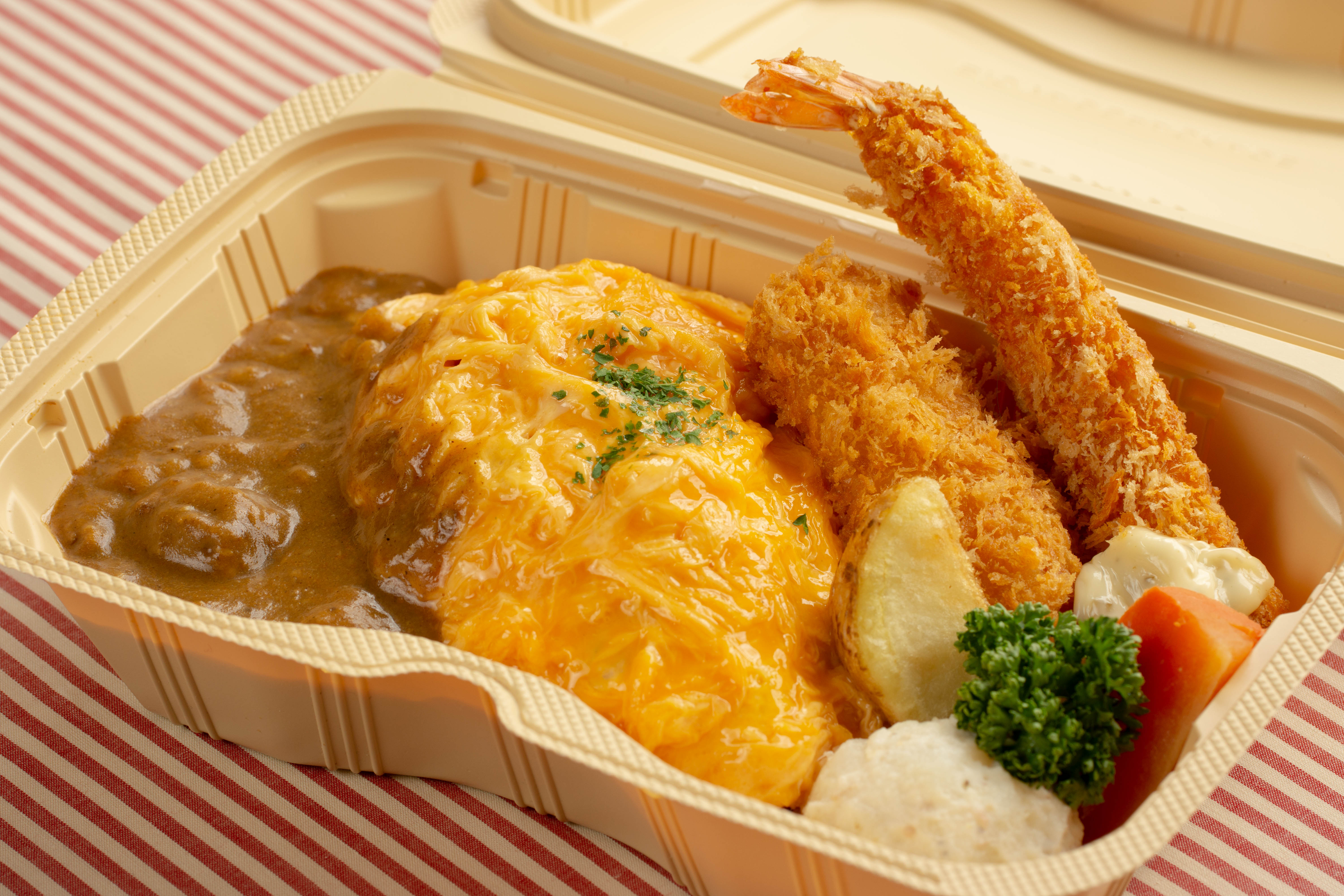 オムライス、カレー、ハヤシライス、洋食弁当(オムライス・カニコロッケ・エビフライなど)