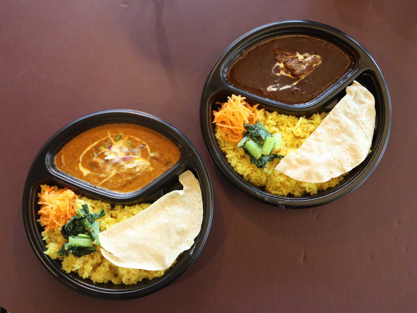 カレー、ナンロール、タンドリーチキンバーガー