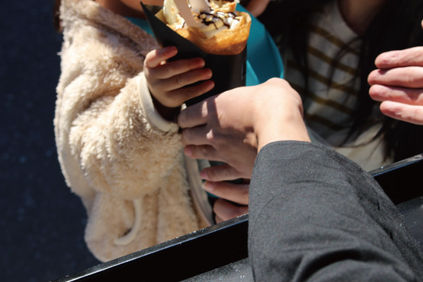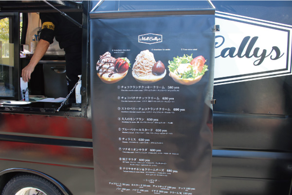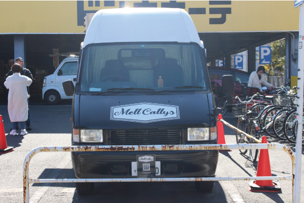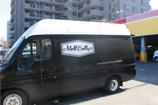 クレープ屋さんといえば、ピンクなどの明るめで可愛らしいイメージですが、メルキャリーズさんはブラックで統一。クールで洗礼されたイメージと、大人のシックなスタイルを表現しています。細部までこだわったキッチンカーは、どんな現場にもよく溶け込みます。