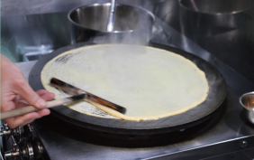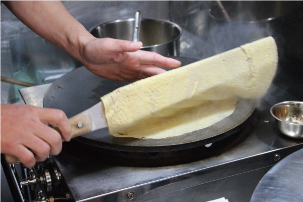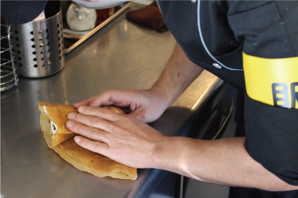 クレープと言えば薄皮一枚の生地ですが、メルキャリーズさんの生地は、薄いのにもちもちしたケーキのような生地が特徴的です。今まで食べたことのない食べ応えともっちりとした食感が、やみつきになること間違いなしです。