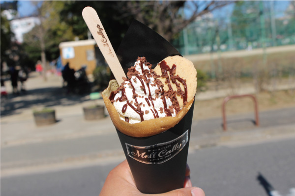 クレープは、若い子を中心に人気のフードというイメージがありますが、メルキャリーズさんのクレープは大人の方も喜んでくれるラインナップで用意されています。大人気のモンブランクレープには、ラム酒を加えてアクセントを出していて、舌のこえた方にも大満足のデザートに仕上がっています。