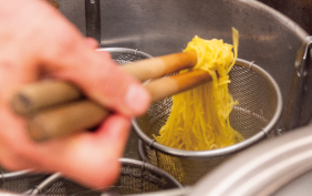 廻(みち)がこだわり抜いたのはラーメンを作る上での設備。店舗型のラーメン屋さんにひけを取らない調理機材を積んでいるからこそ、本格的なラーメンを提供できます。茹で麺機、スープを煮込む寸胴など、キッチンカー にここまでのクオリティを積み込むのは至難の技。店主のラーメンに対する熱い思いが窺えますね