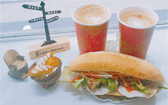さらに、ジューシーなグリルチキンバインミーやヘルシーなベジバインミー、栄養満点の弁当メニューも大人気です。ターメリックと生姜で風味付けされたご飯にココナッツミルクでマリネしたお肉をトッピングしたベトナムグリルチキン弁当もおすす