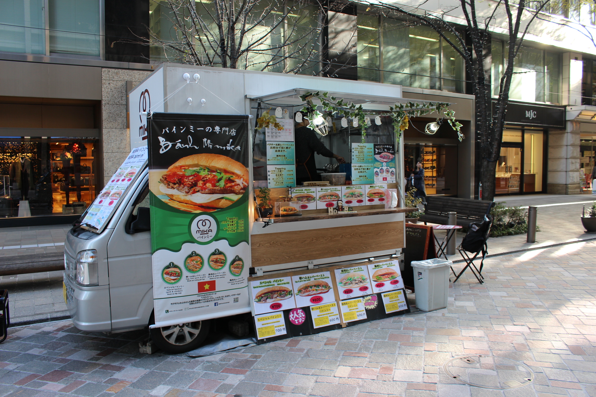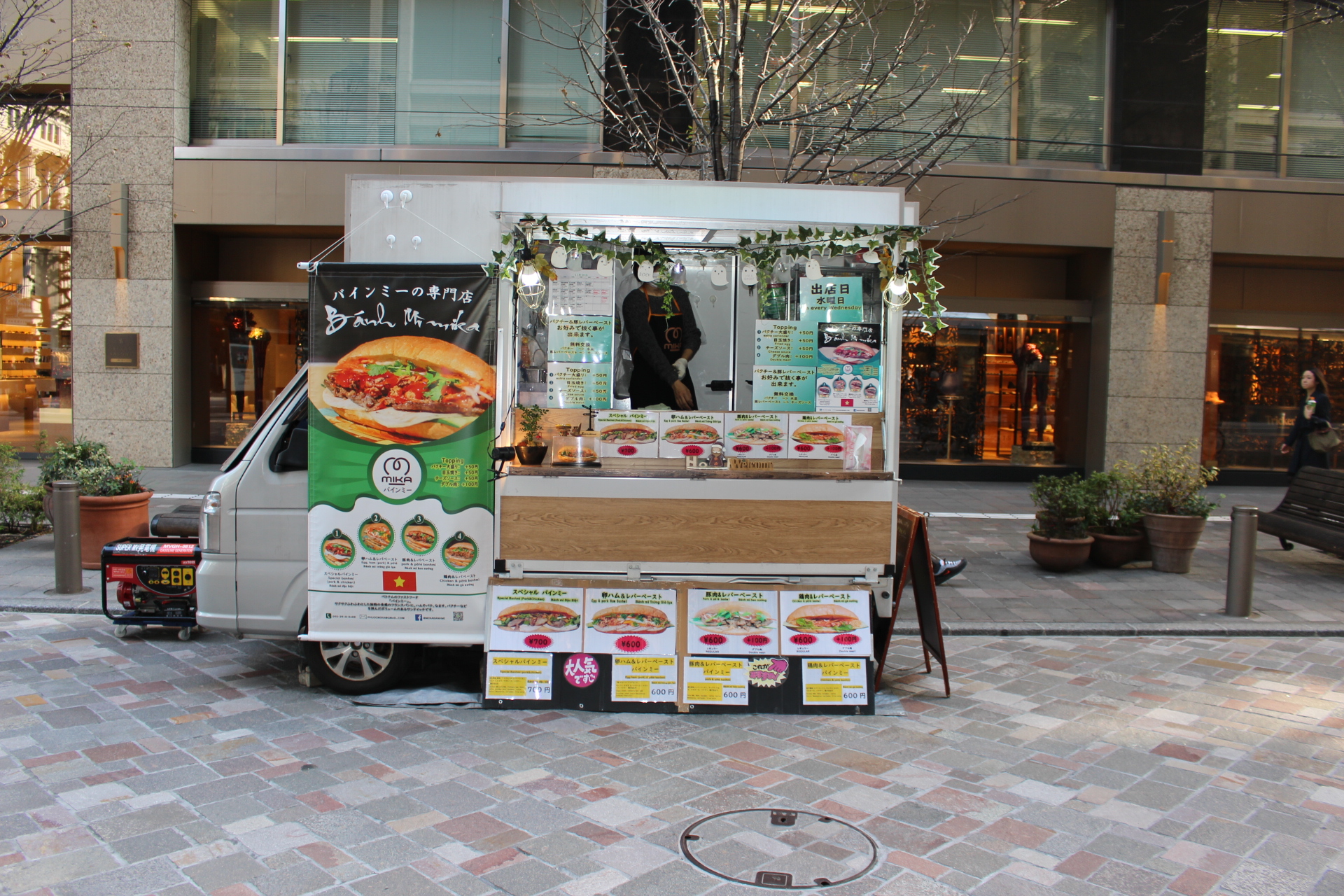 車両は軽車両タイプで営業しています。オフィス街やビルのちょっとしたスペースでも出店可能です!テイクアウトで気軽に食べられるバインミーはお祭りやマルシェにもぴったりです♪シーンや季節に応じて、温かいフォーや春巻きなども提供しています!場所、季節問わず、どんなシチュエ ーションでも美味しい料理を提供してくれるミカバインミー♪
