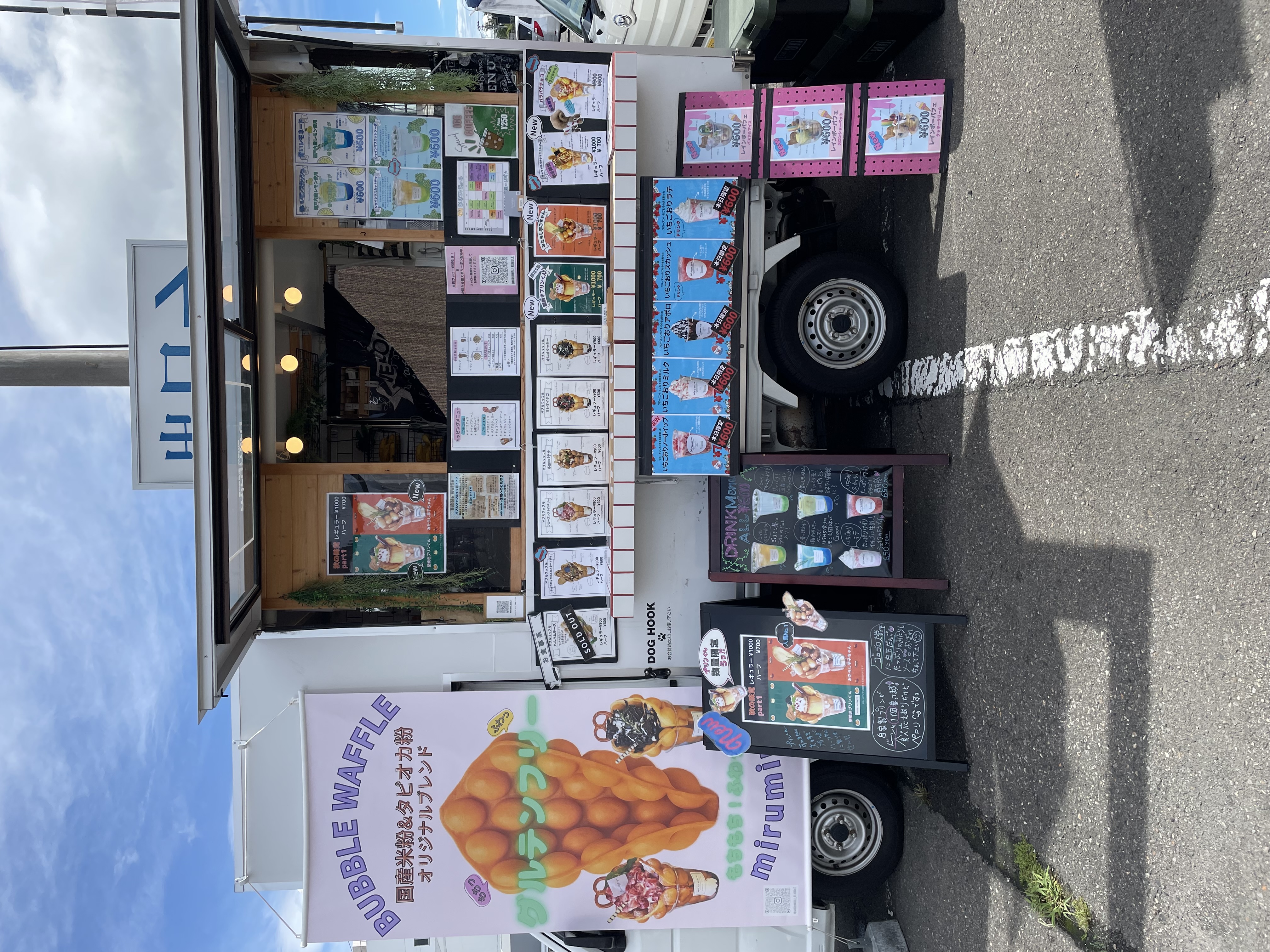 バブルワッフルスイーツ系、お食事系、ドリンク、アイスクリーム、苺削り、かき氷