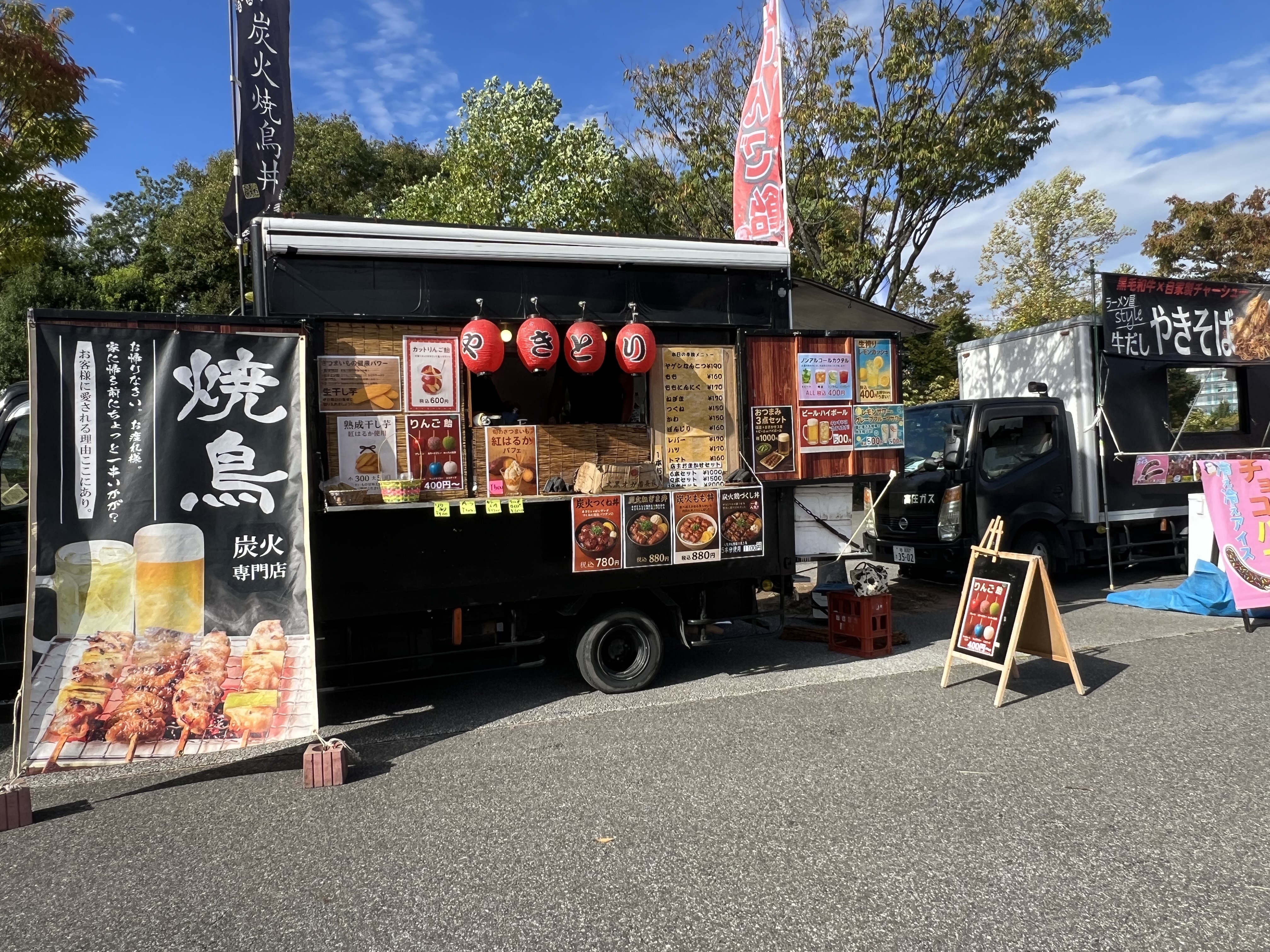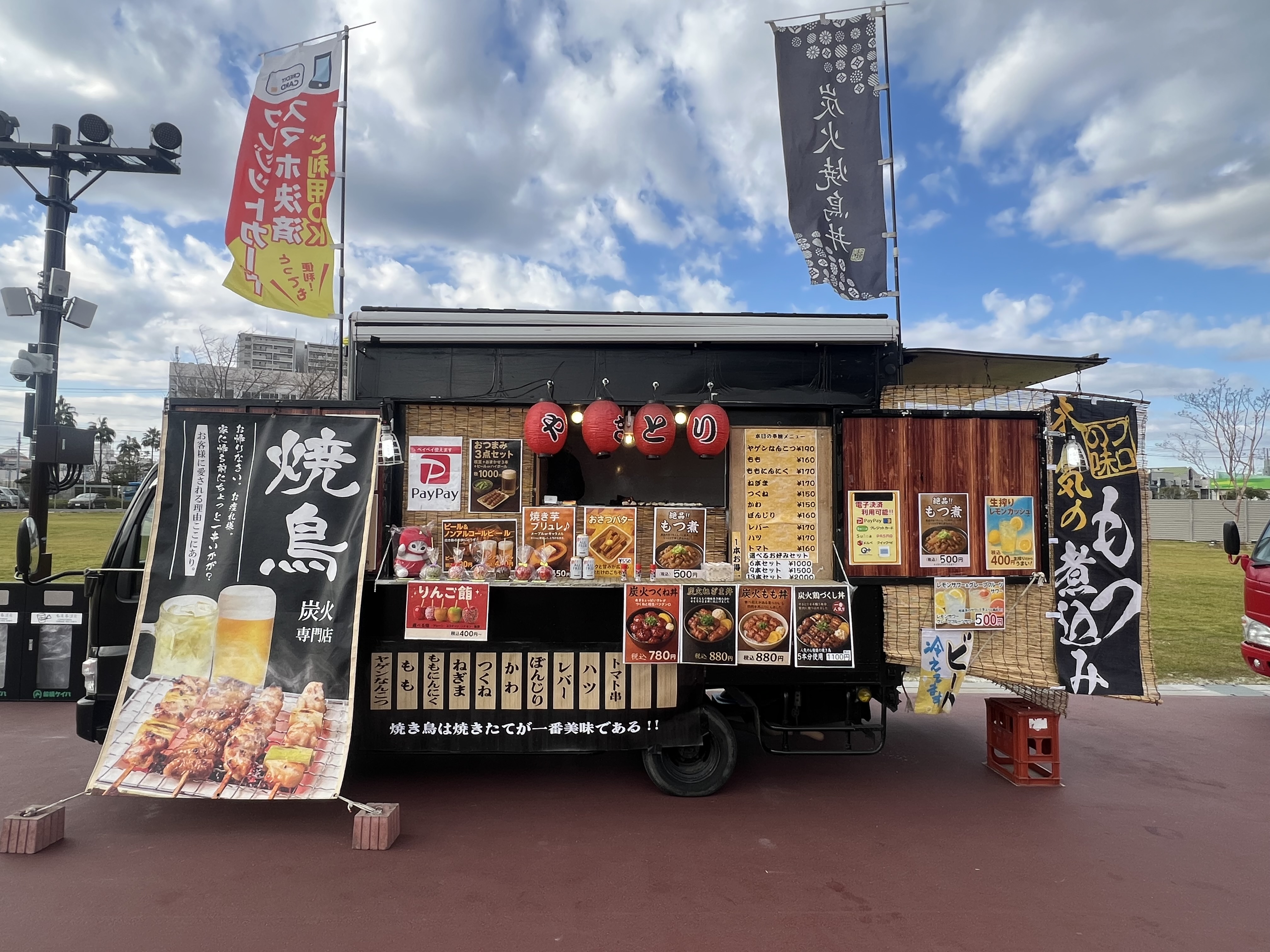 焼き鳥、焼き鳥丼、もつ煮丼りんご飴、もつ煮、アルコール、ノンアルコール、かき氷、クレープ、