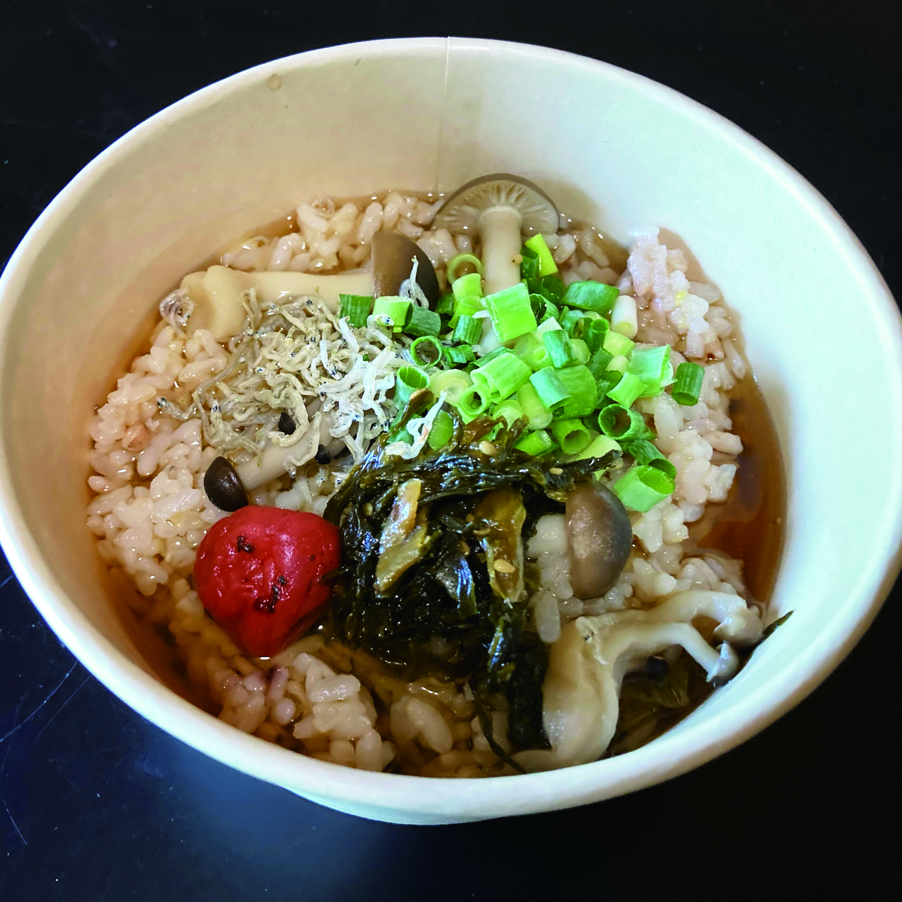 季節のお野菜と昆布だしを使った自家製生パスタと雑穀米出汁茶漬けをお出ししております。