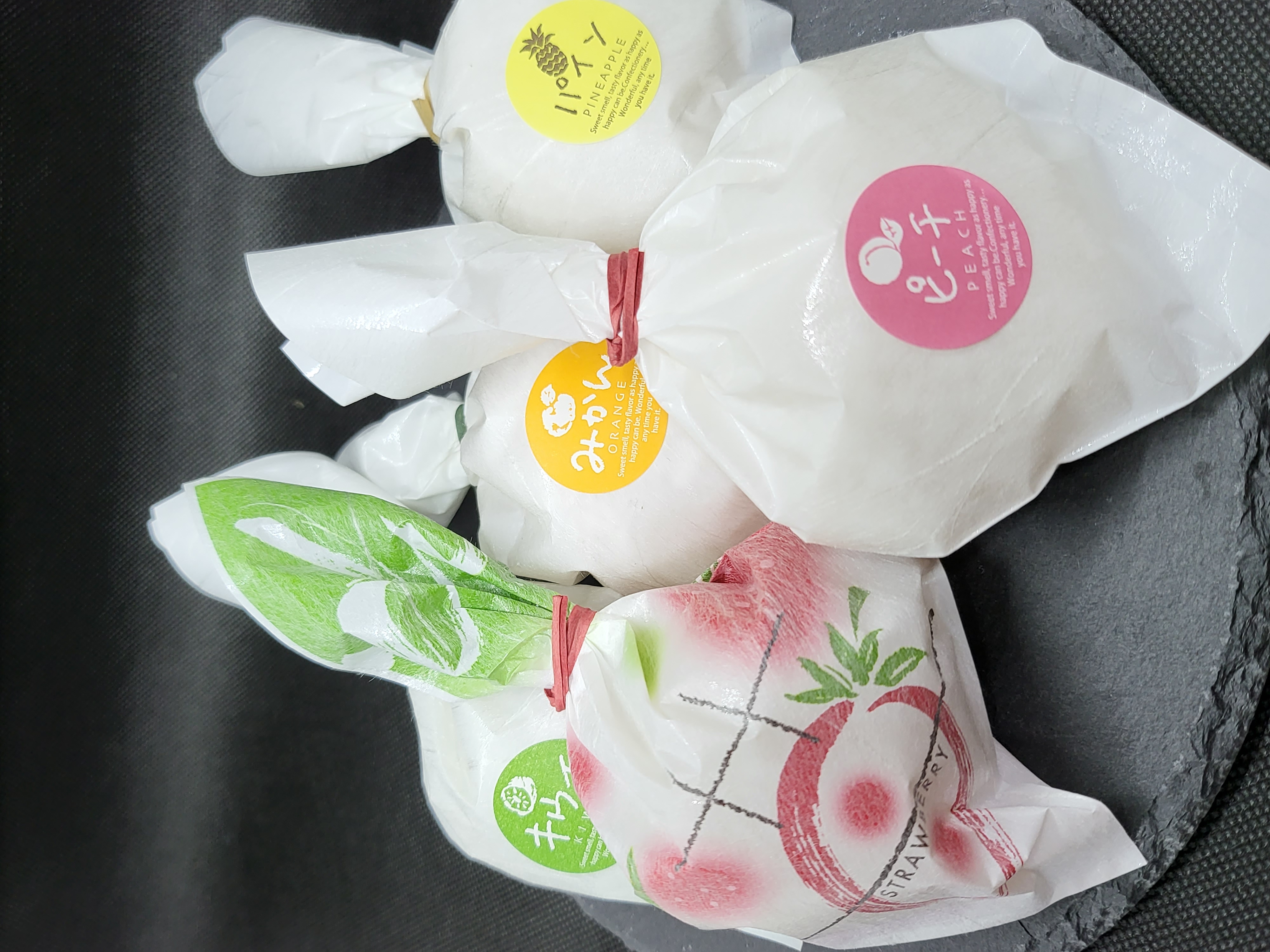 もちパイ、本わらび餅もなか、フルーツ大福、ドリンク