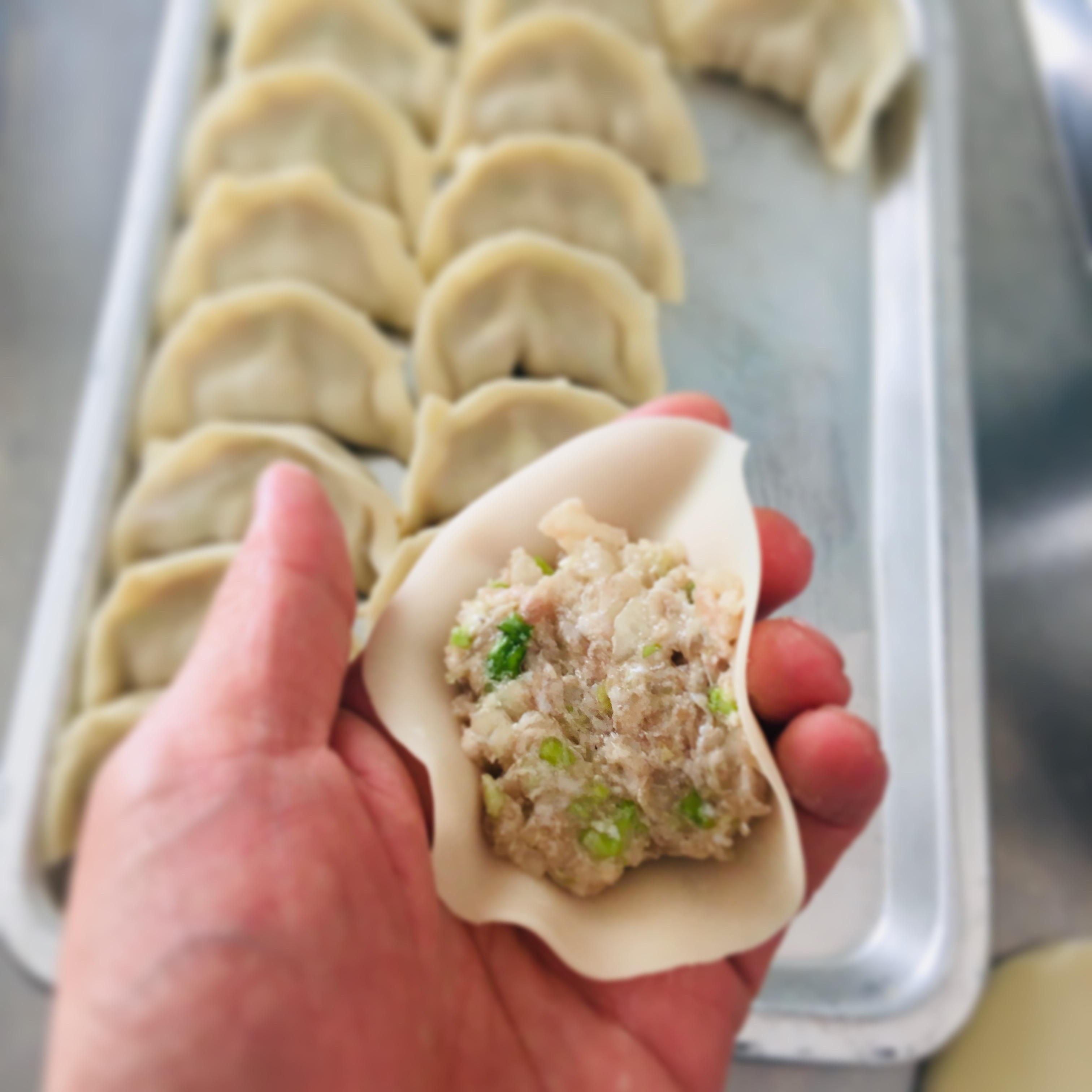 疲労回復など栄養学的にも相性が良いとされている豚肉と玉ねぎをベースにしたあんをもちっとした皮で包みました。