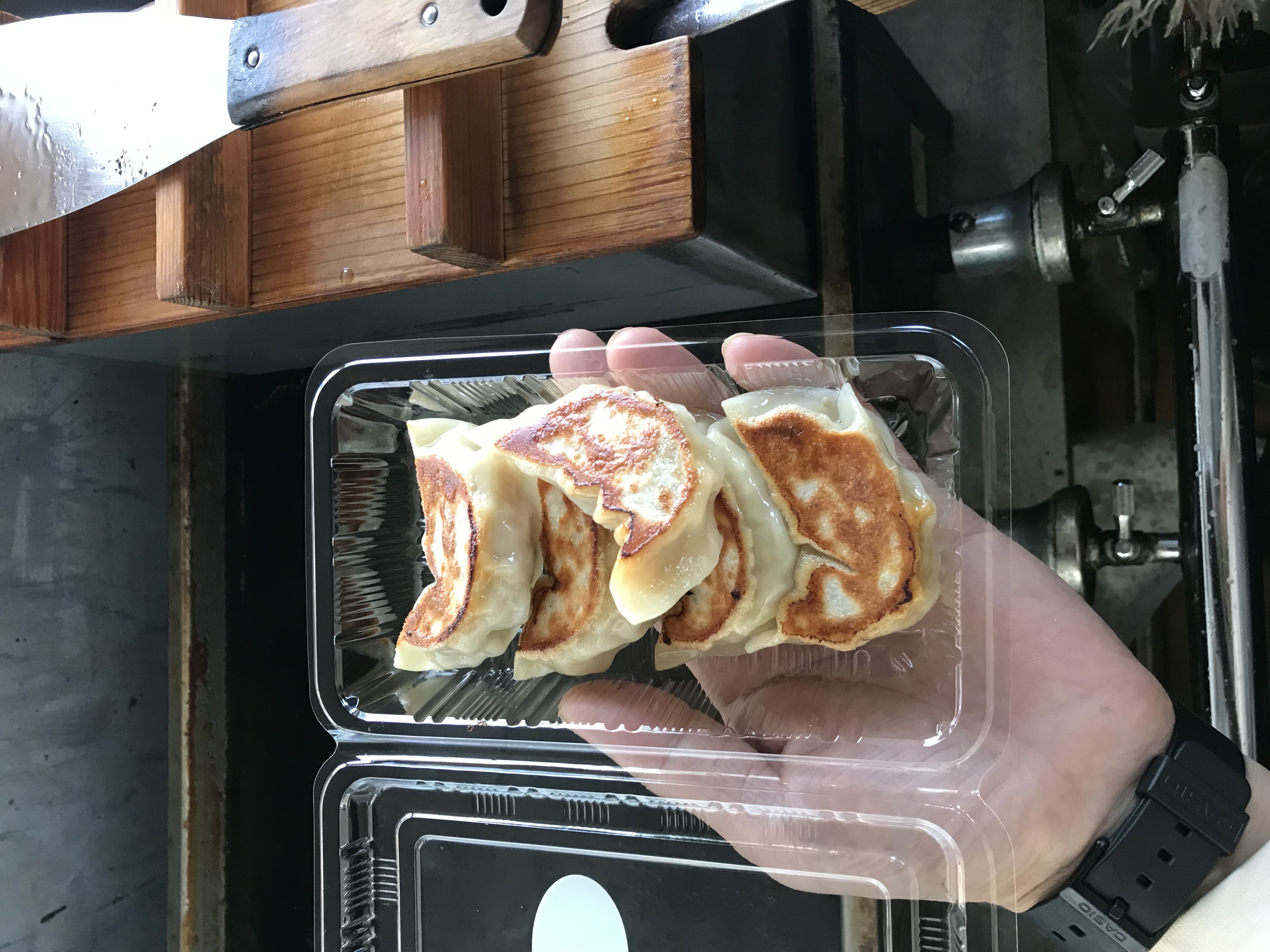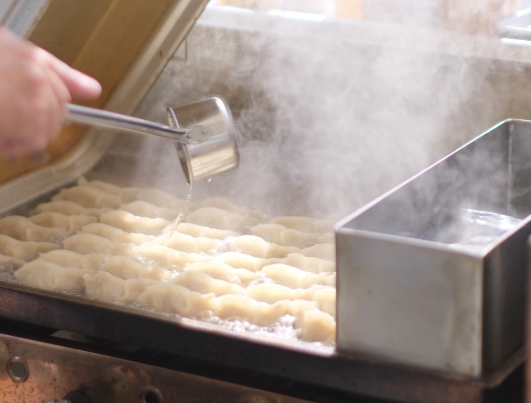 手づくり餃子をその場でこんがりと焼きあげます。