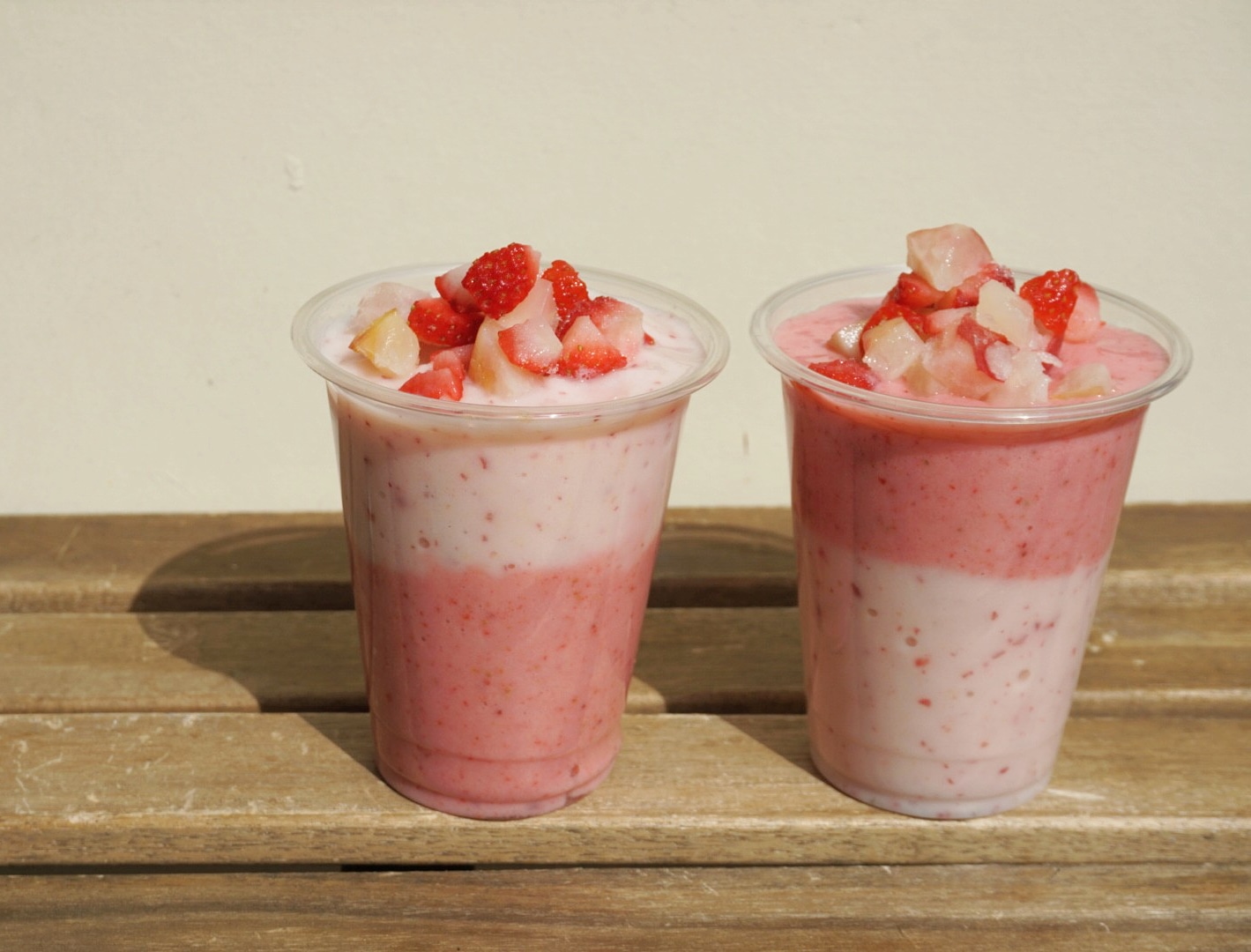 モリタファームでは、ご注文を頂いてから1杯1杯丁寧に果物をブレンドしてスムージーを作っています。店主ニュージーランド人が考えたレシピ、とろっとした果物のおいしいコンビネーションをお楽しみください。