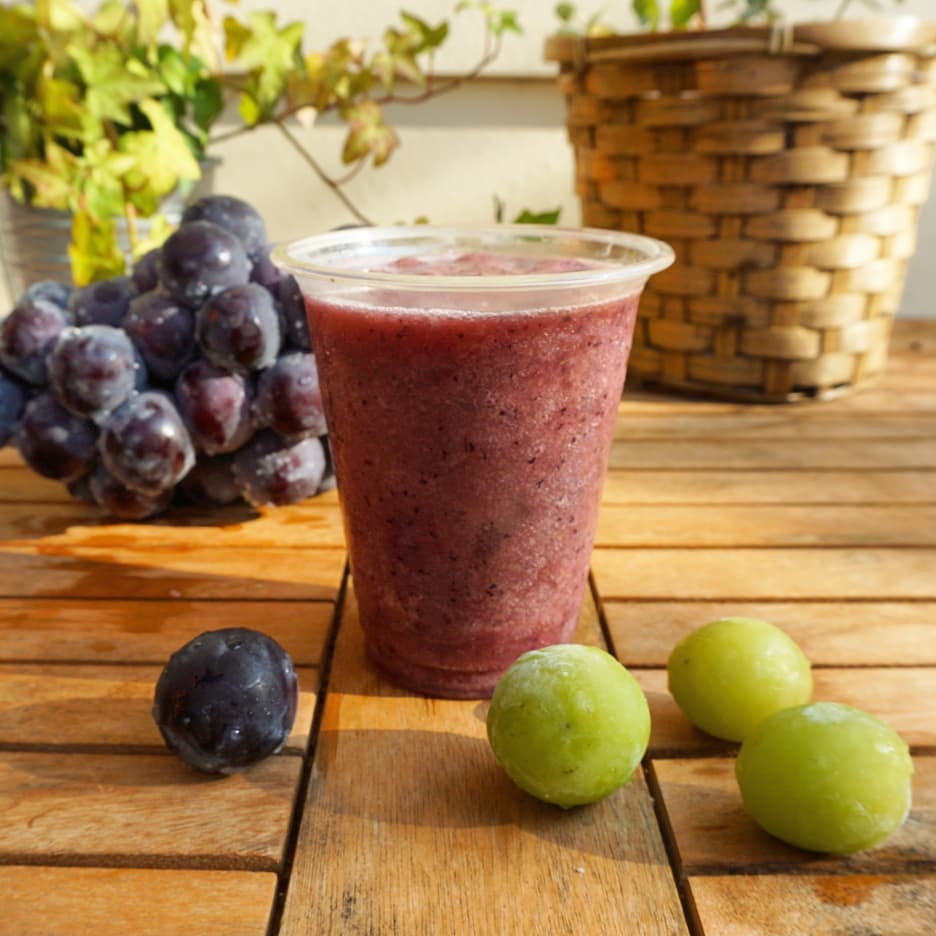 桃をメインに山梨の農家さんから直接仕入れたぶどう、すもも、いちご、洋ナシ、ラズベリー、柿、ゆず、桑の実など、旬の果物を素材そのままの美味しさを大切にスムージーにしています。