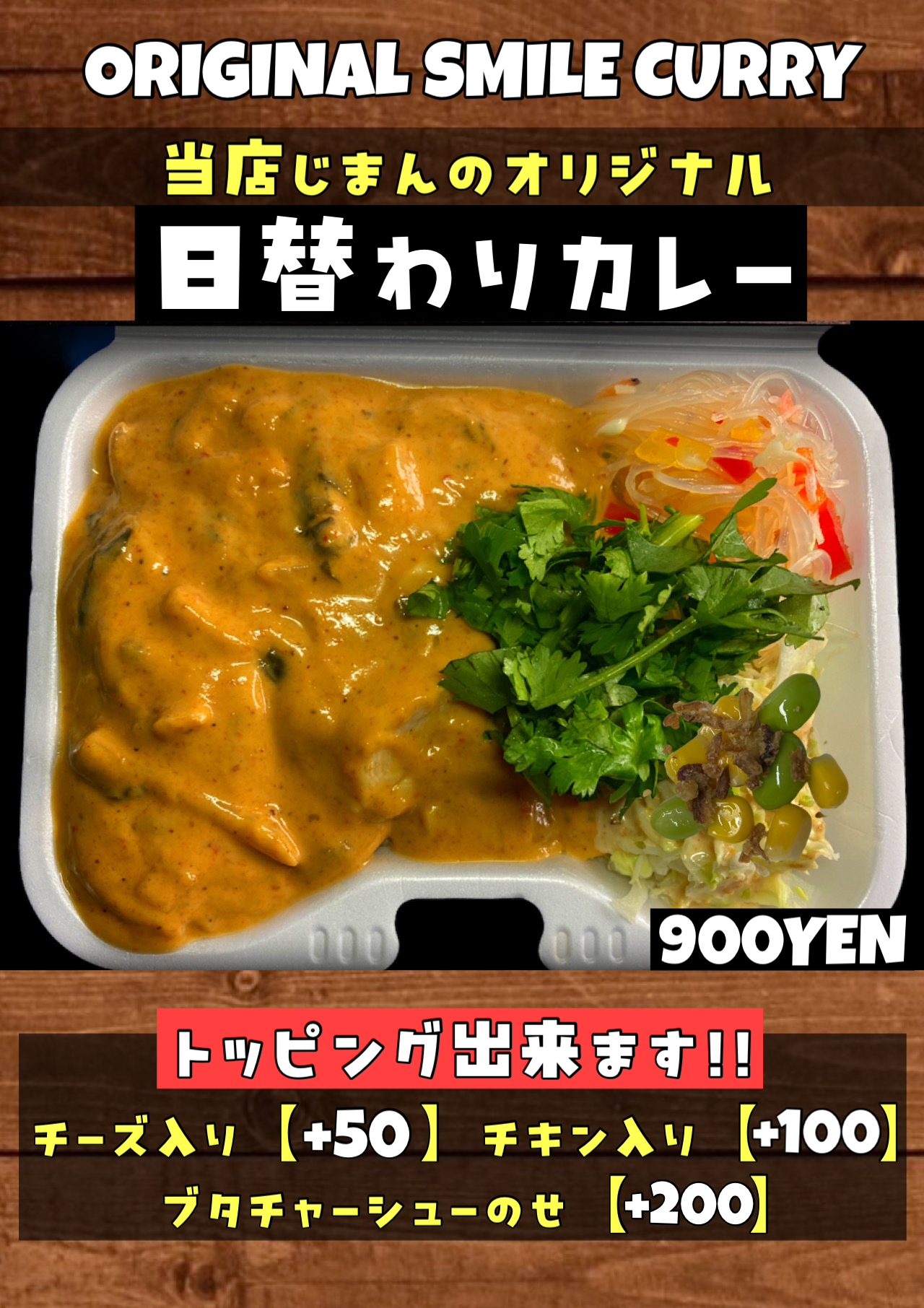 日替わりカレー/日替わりチキン/カオマンガイ/豚肉丼/国産豚チャーシュー/トムヤムスープ/その他トッピング有り
