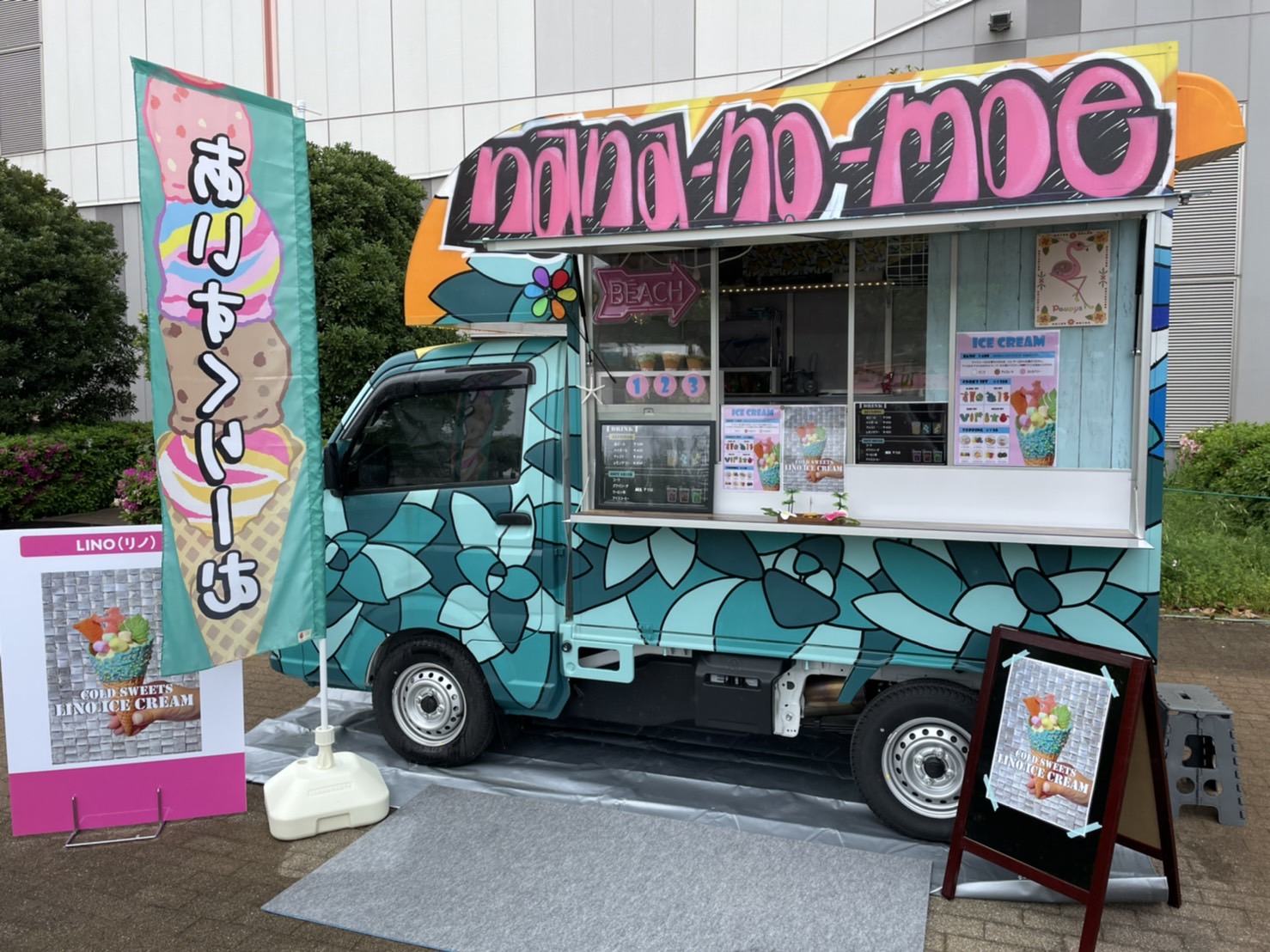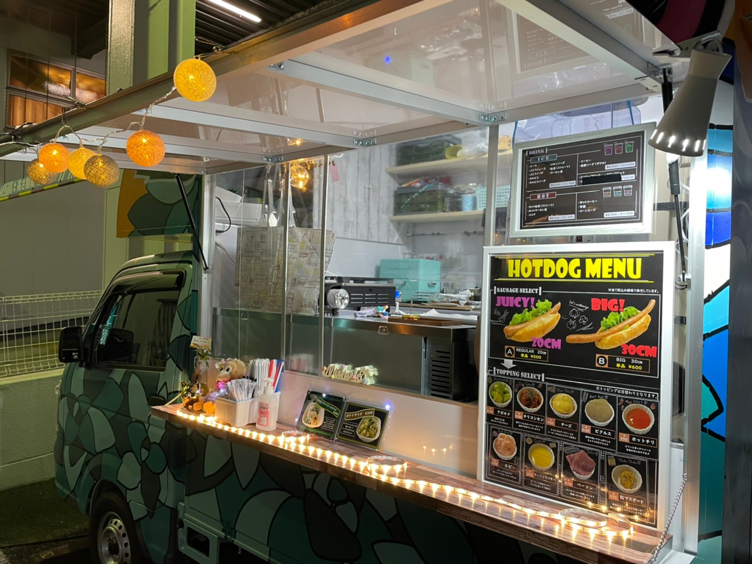 ホットドッグ、アイスクリーム、ドリンク