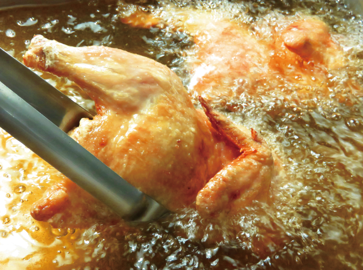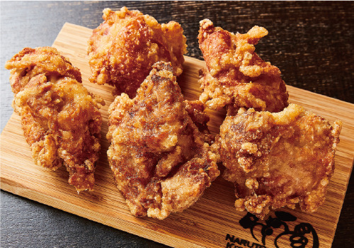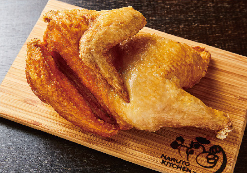国産の若鶏の半身を 一切の衣をつけずに高温で一気に素揚げ。
