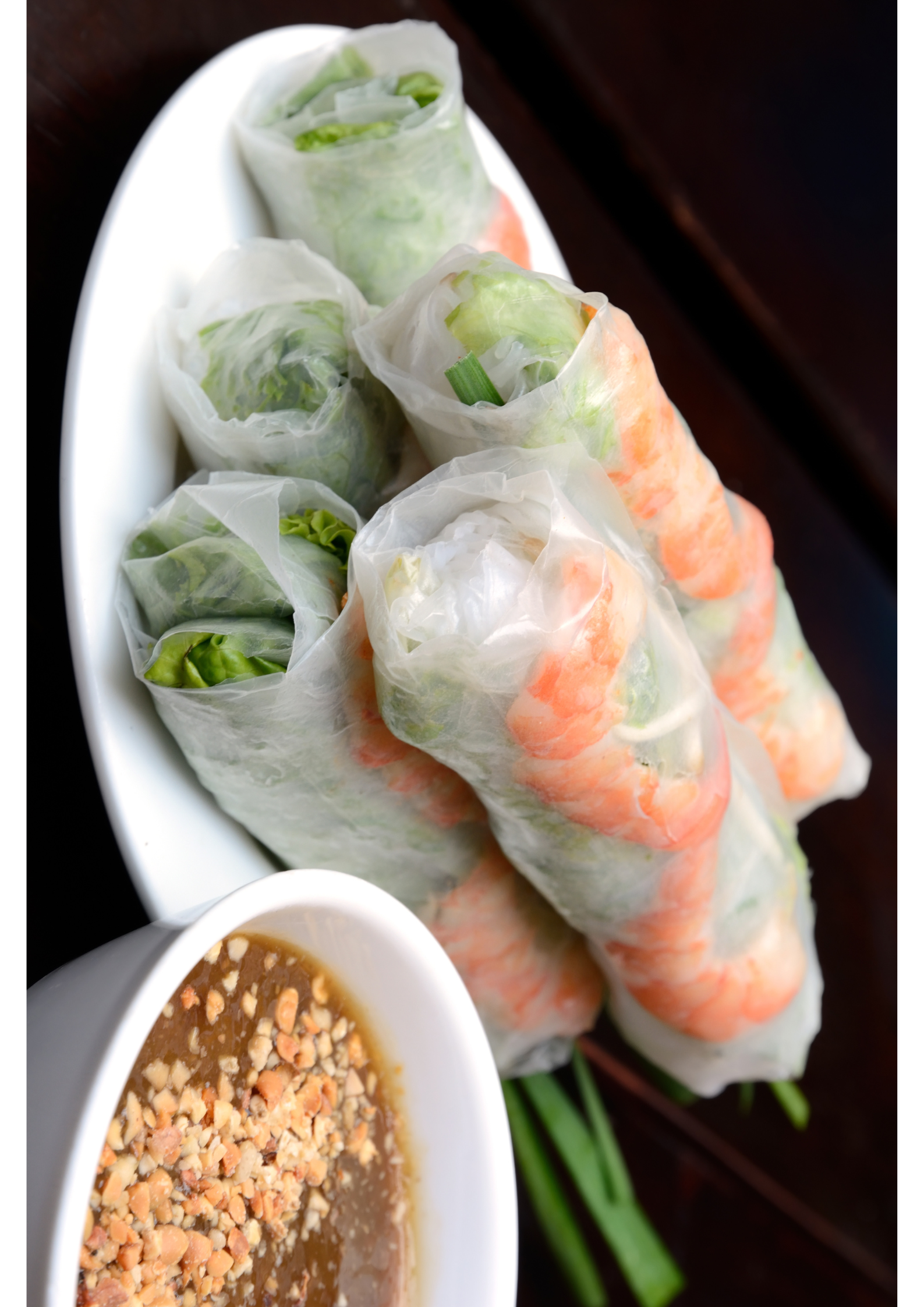 ベトナムのバインミー(サンドイッチ)、生春巻き、コーヒー、ドリンク