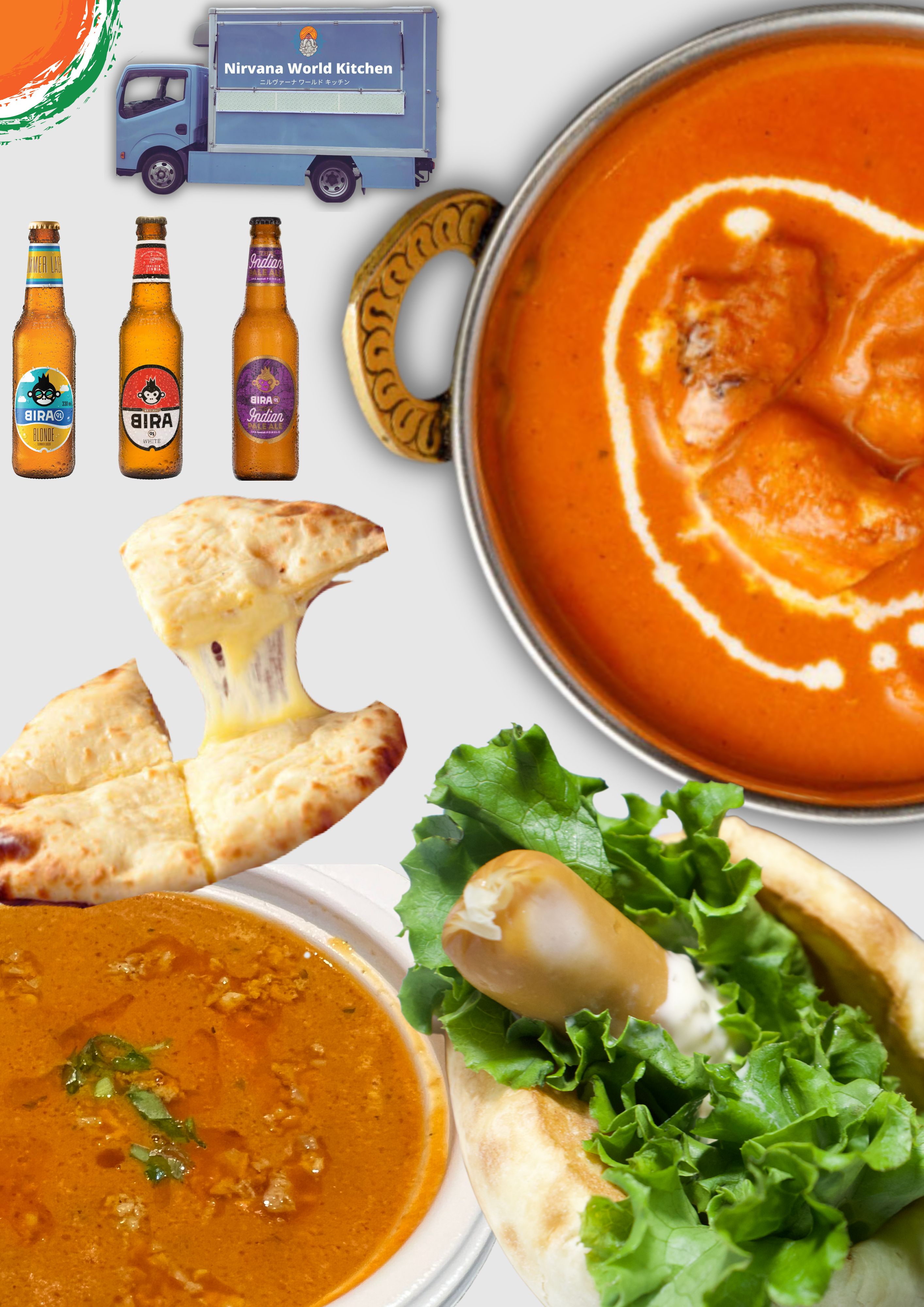 インドカレー(バターチキン・チキン・キーマ)/焼きたてナン(プレーン・チーズ・シーズンスペシャル)/ドリンク各種