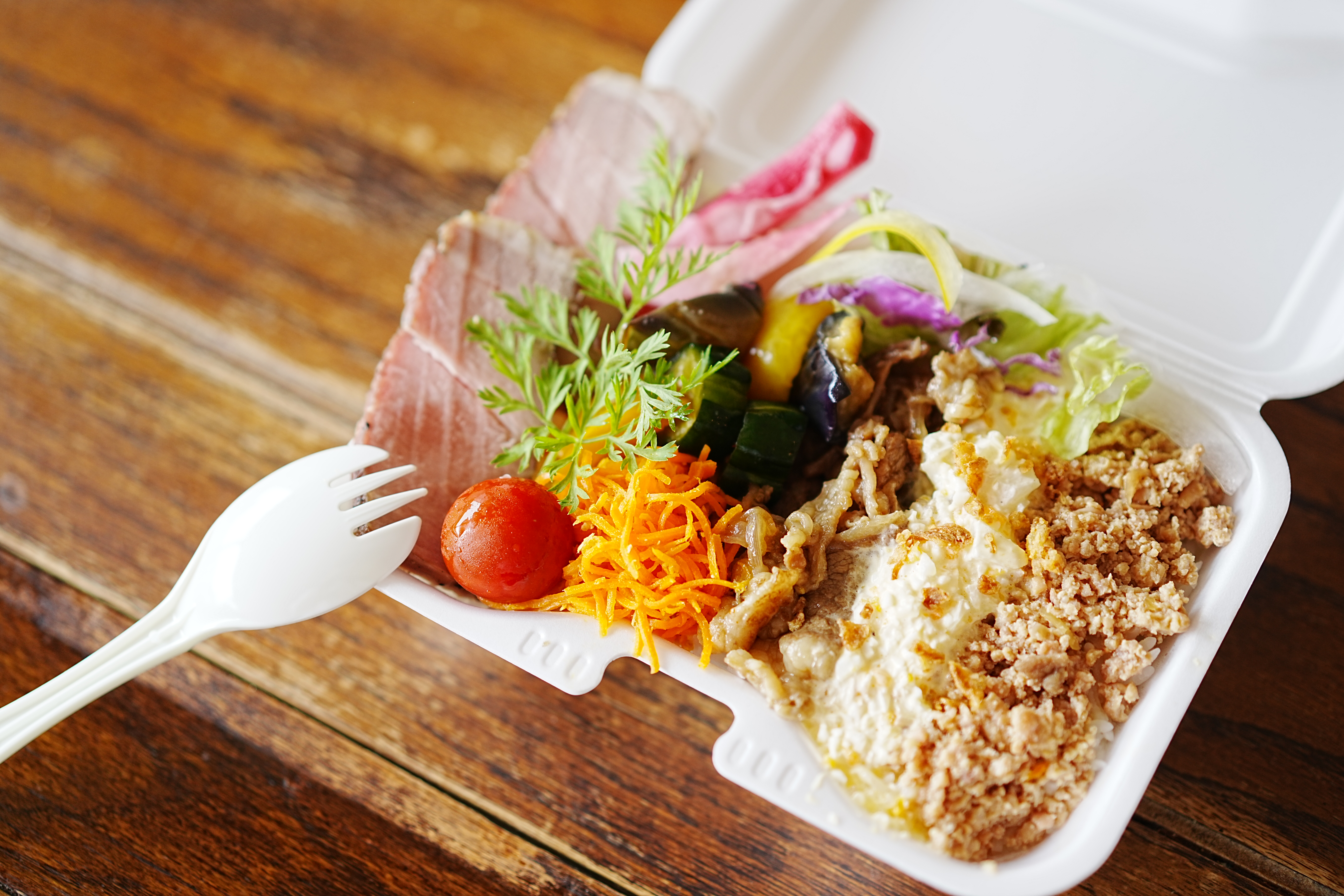 私は野菜も好きですが、お肉も好きです。なので野菜もお肉もたっぷり摂れる、そんな欲張りなお弁当でオーガニック野菜達を少し身近に感じてもらえたらと思っています。