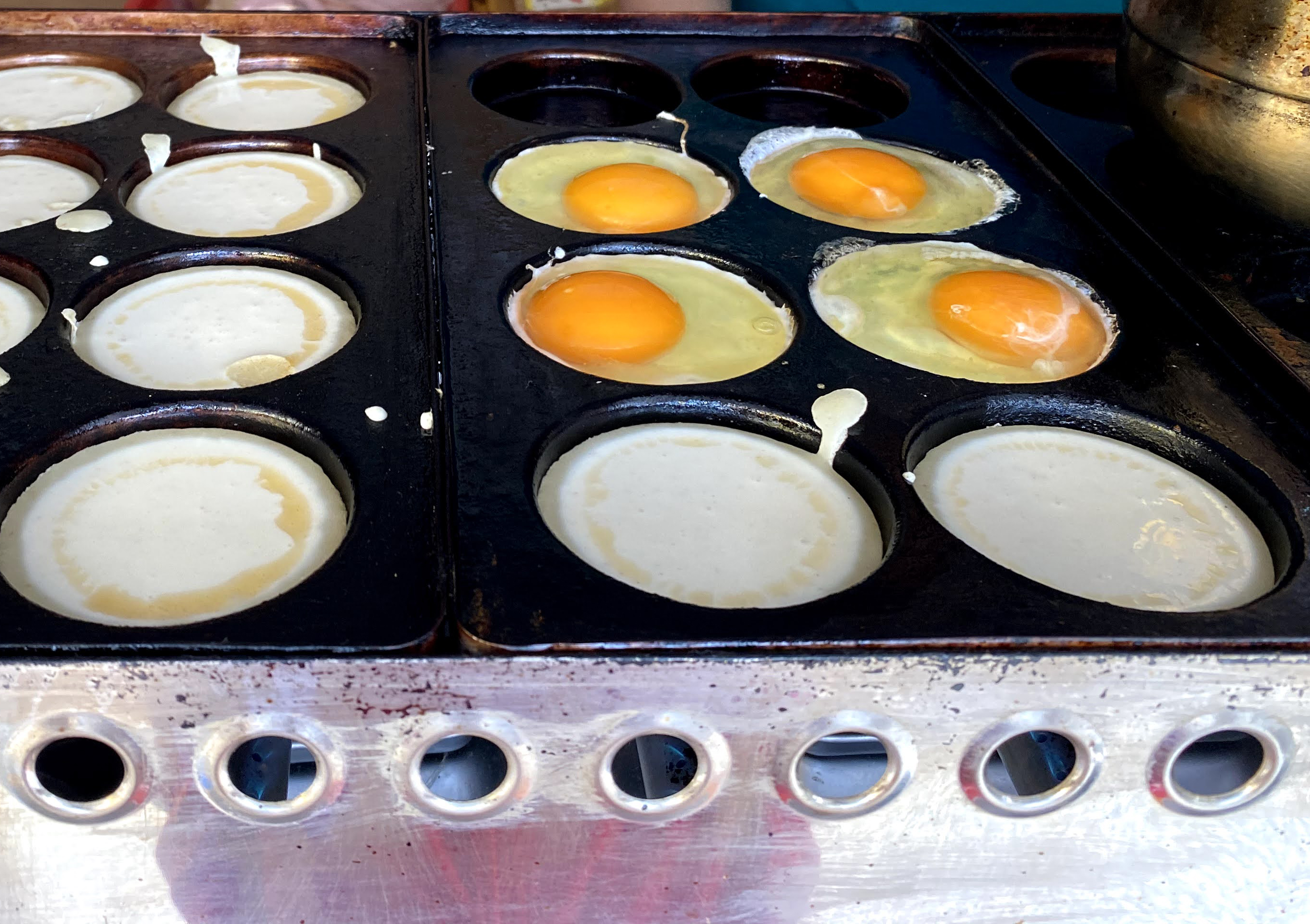 出店当日の朝に仕込んだ生地を現場で下焼き。ご注文を受けてから2分ほどよく焼きするとOCOPAN独特の“サクモチ”生地に!作り置きをしないスタイルなので常に美味しいOCOPANを食べていただけます。