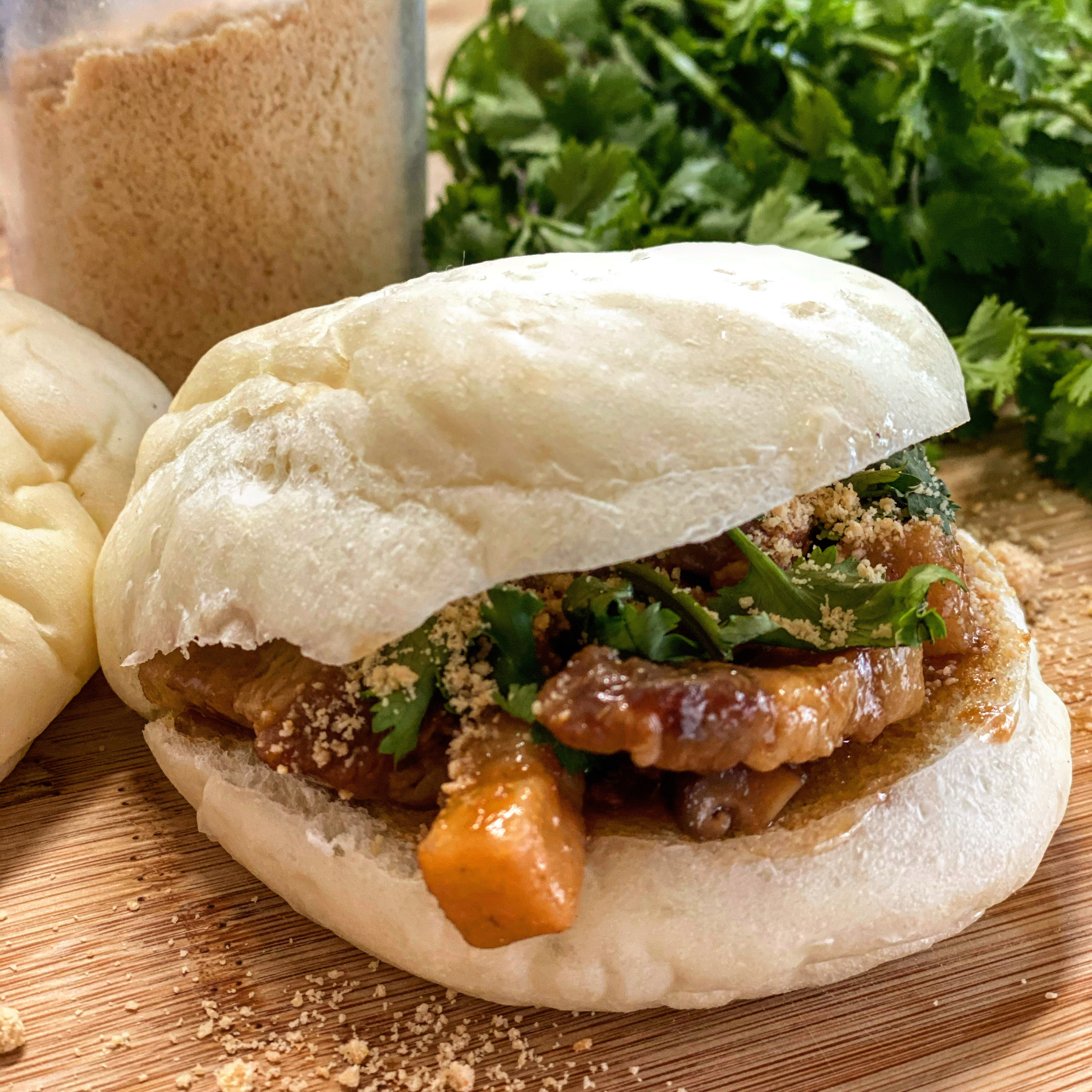 シンプルながら味わいのあるパンにおかかのルーローを挟みました。